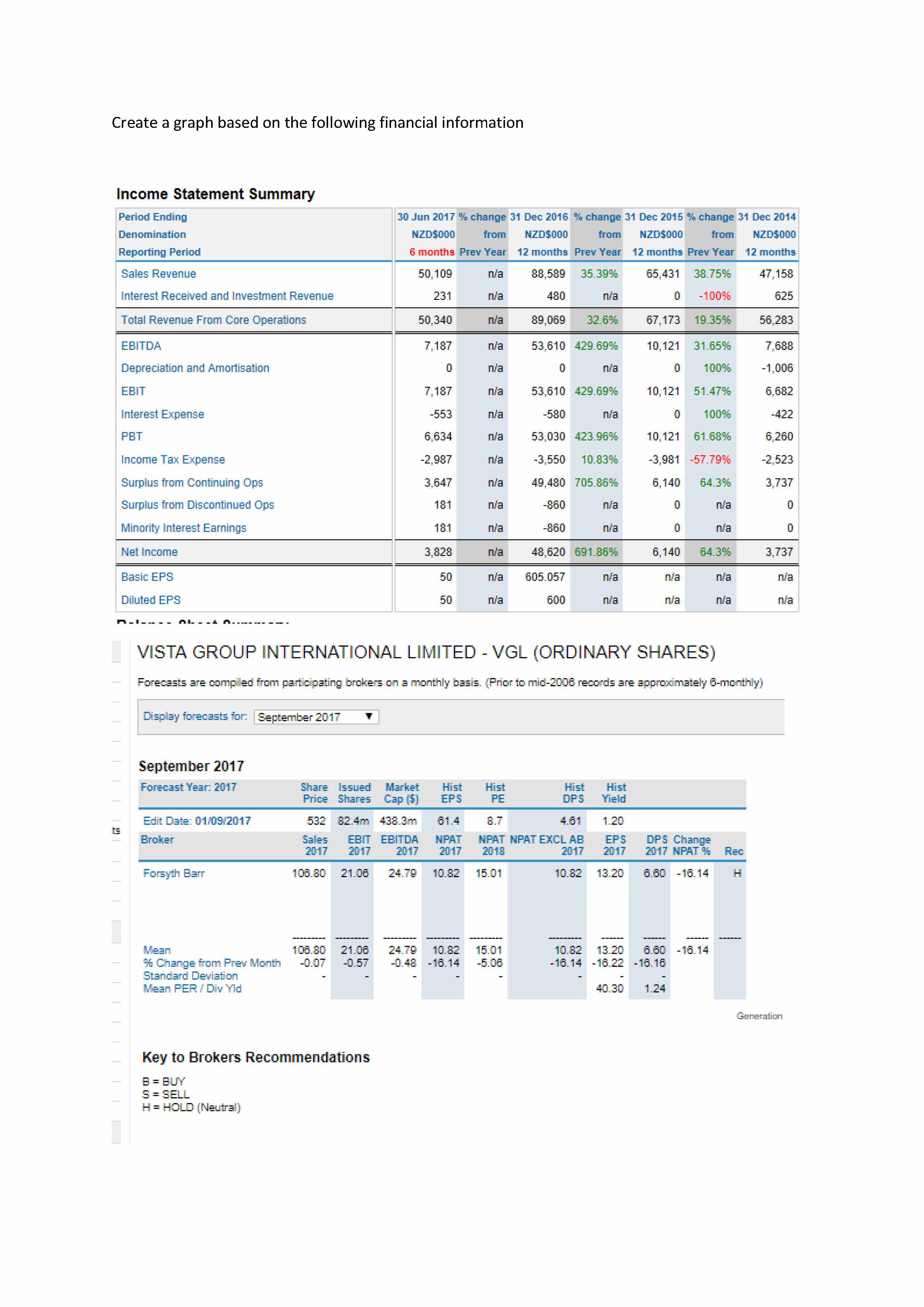 Create a graph based on the following financial information Income...