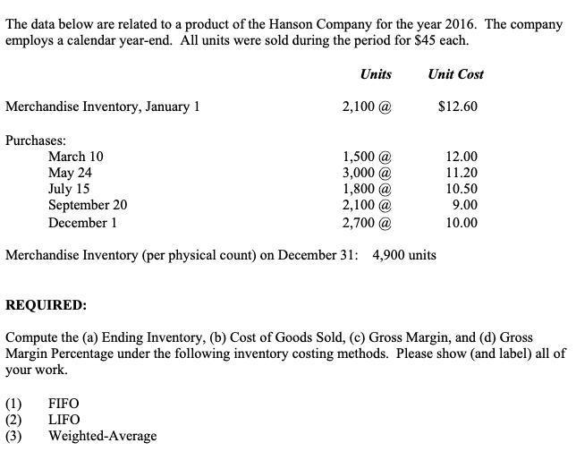The data below are related to a product of the Hanson Company for t...