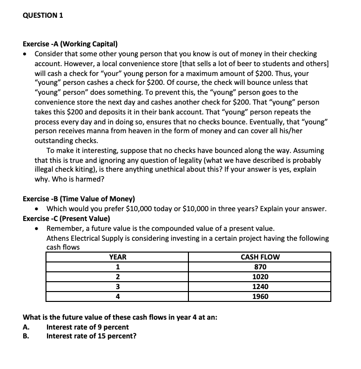 QUESTION 1 Exercise -A (Working Capital) Consider that some other...