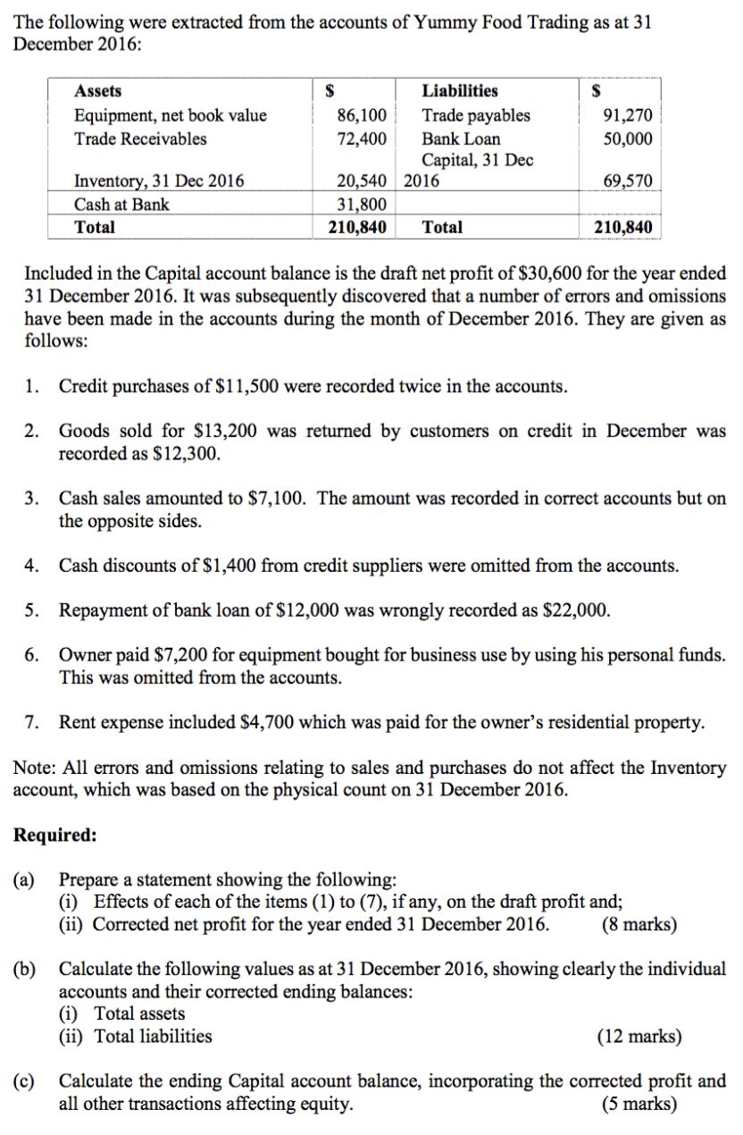 The following were extracted from the accounts of Yummy Food Tradin...