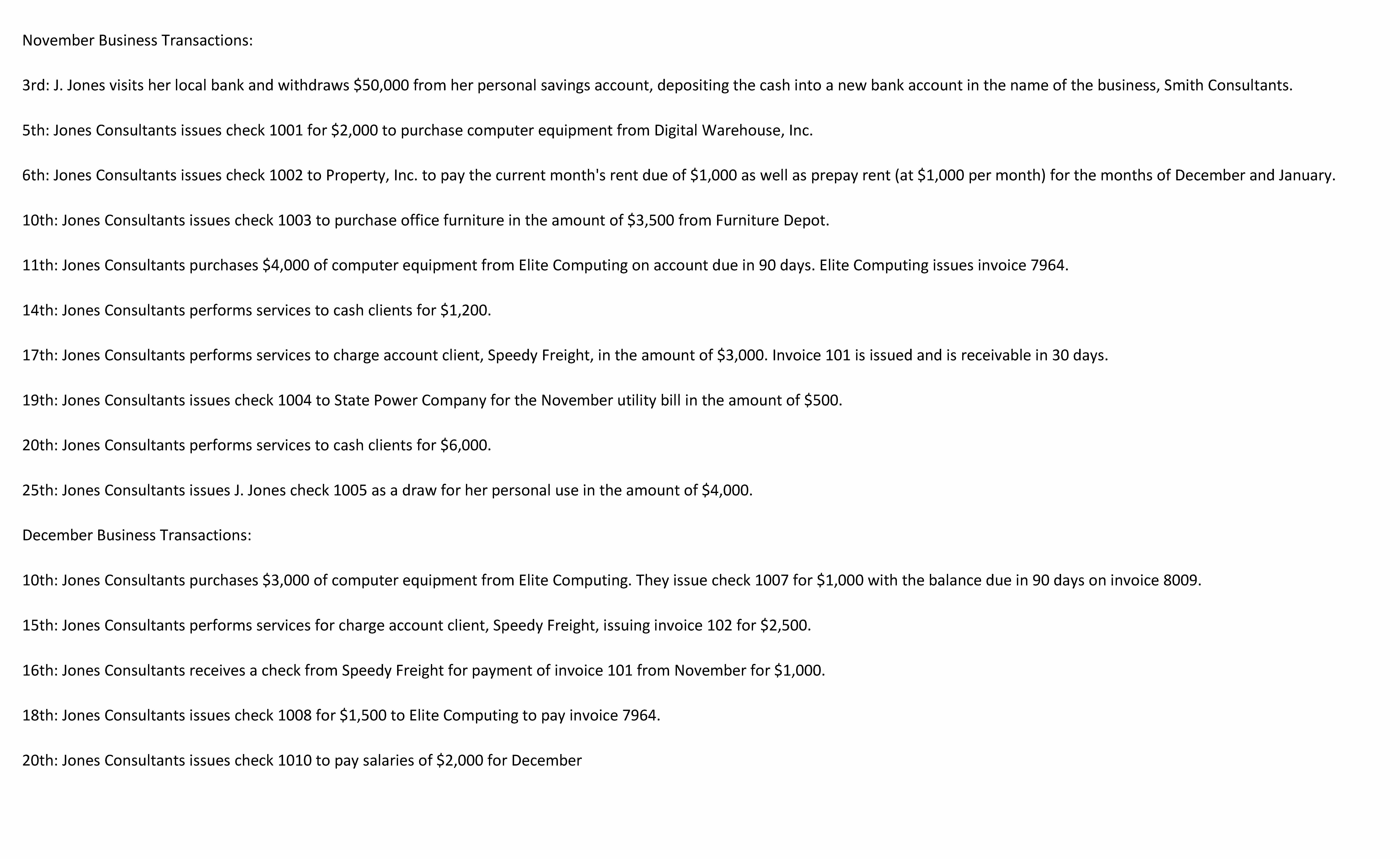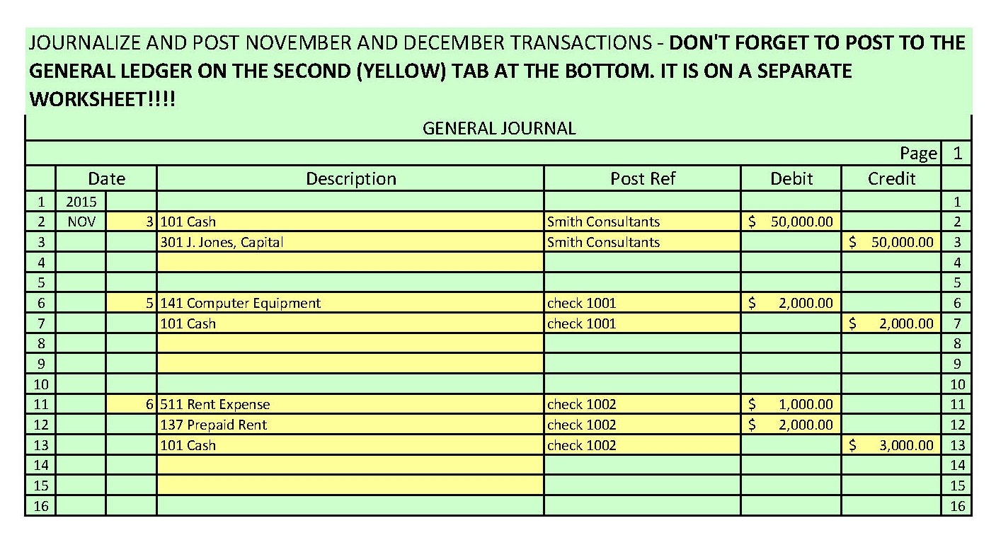 JOURNALIZE AND POST NOVEMBER AND DECEMBE TRANSACTIONS DON'T FORGET ...