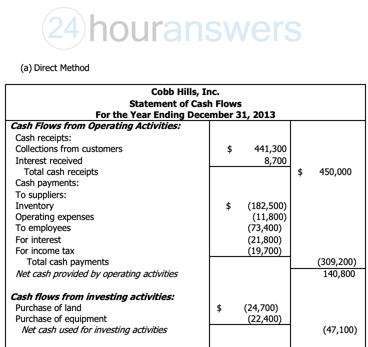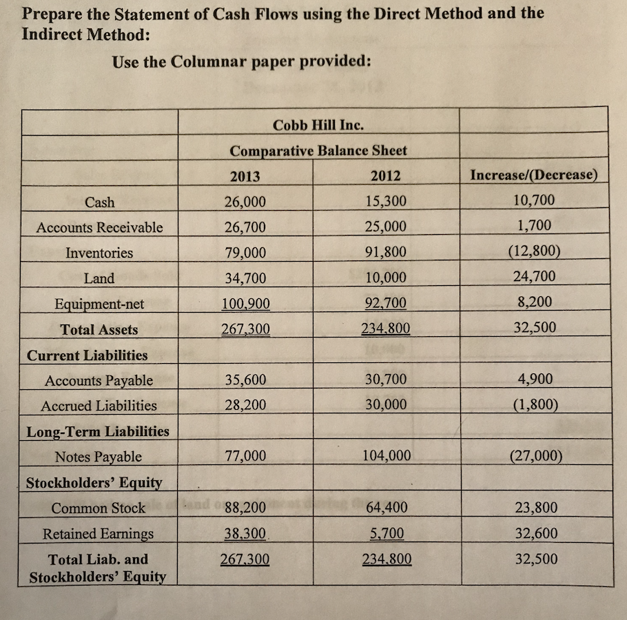 Prepare the Statement of Cash Flows using the Direct Method and the...