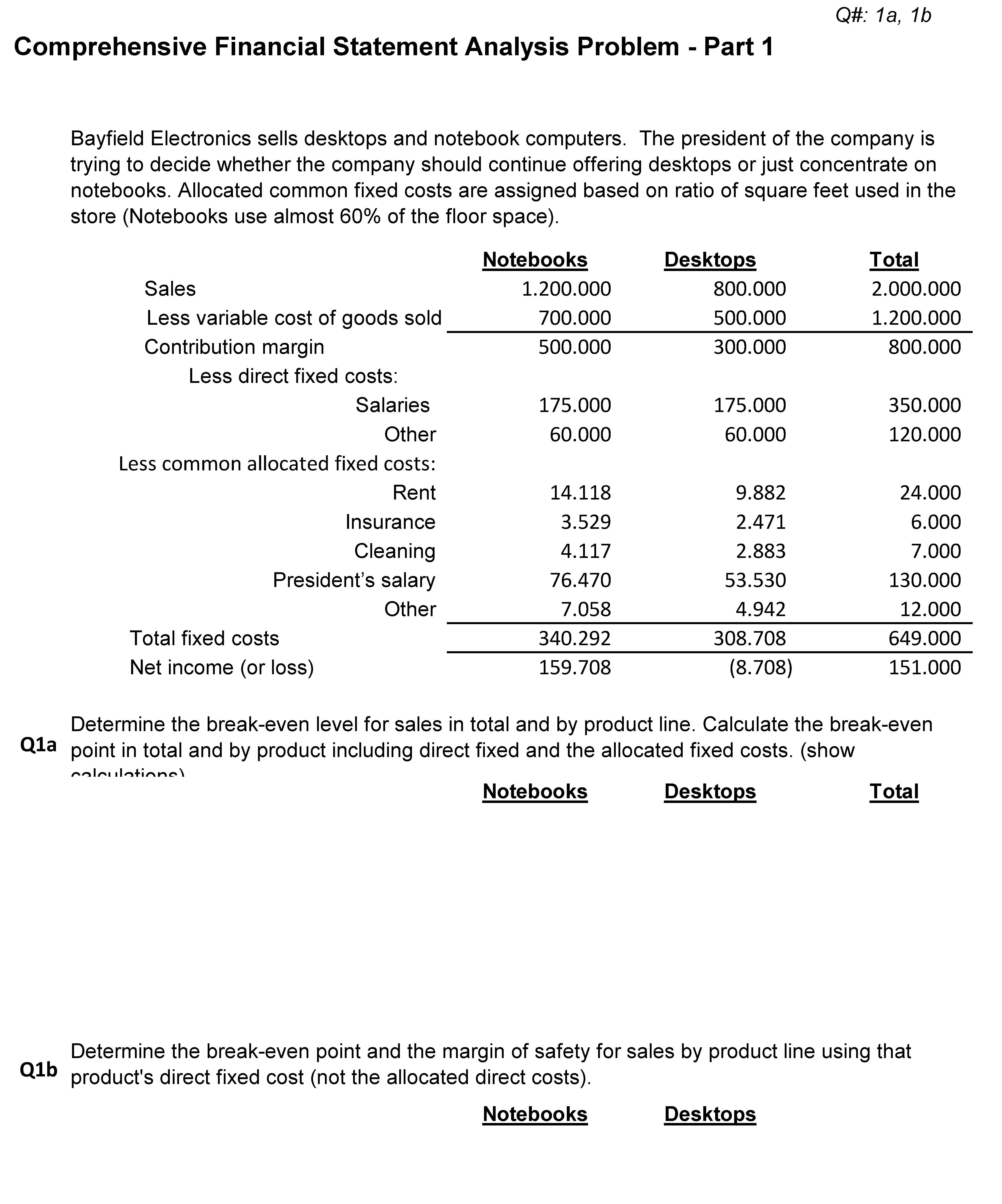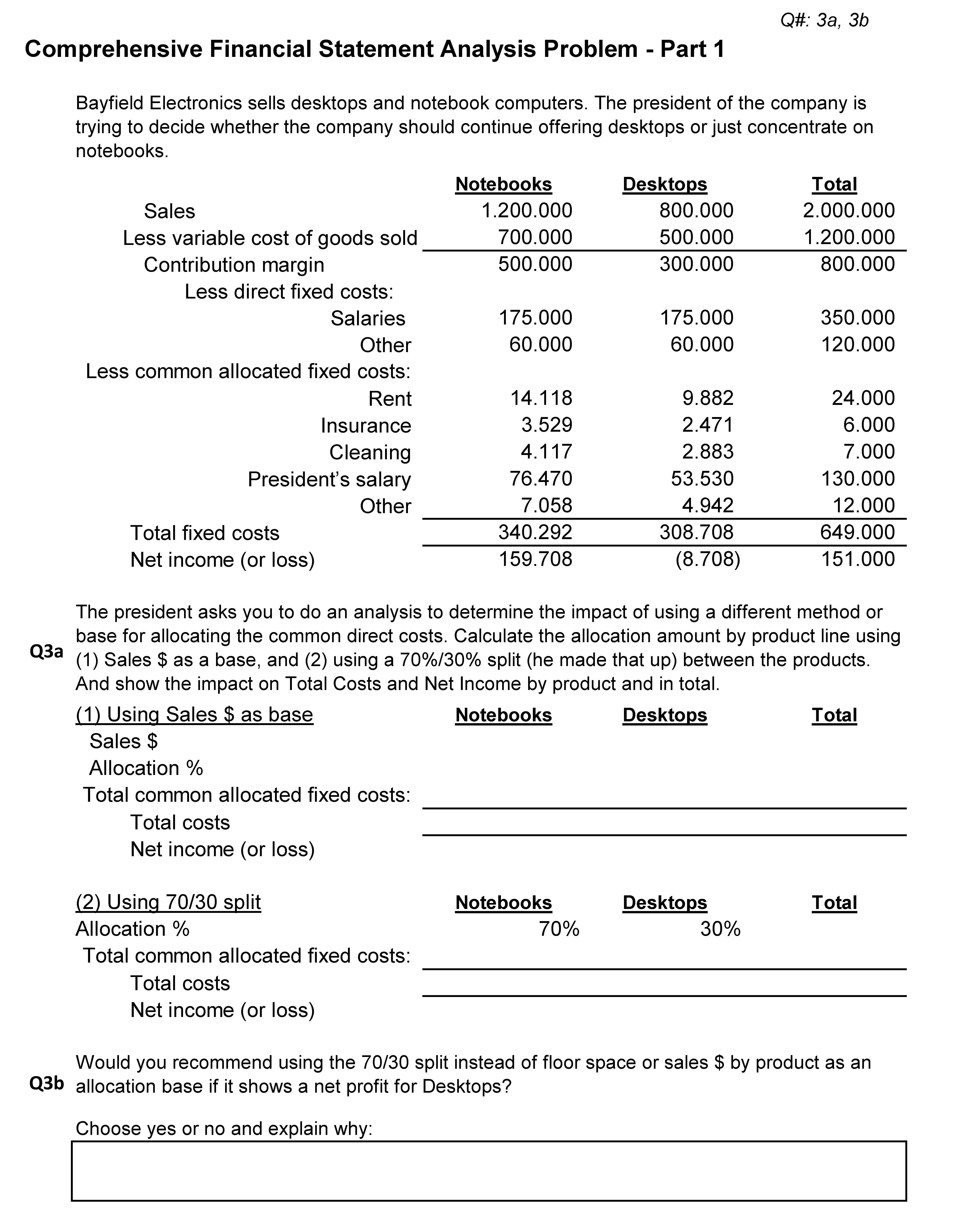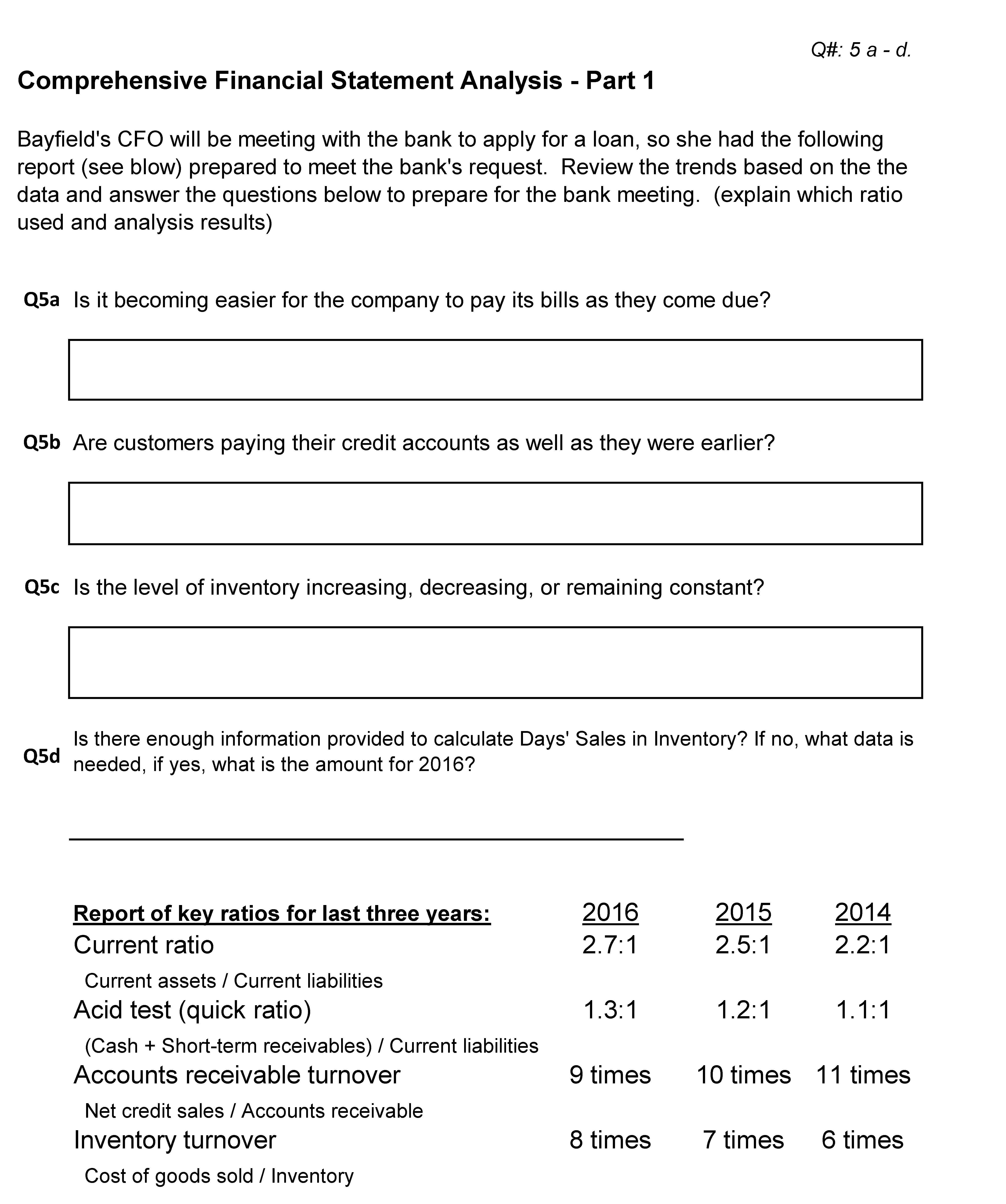 Comprehensive Financial Statement Analysis Problem - Part 1 Bayfie...