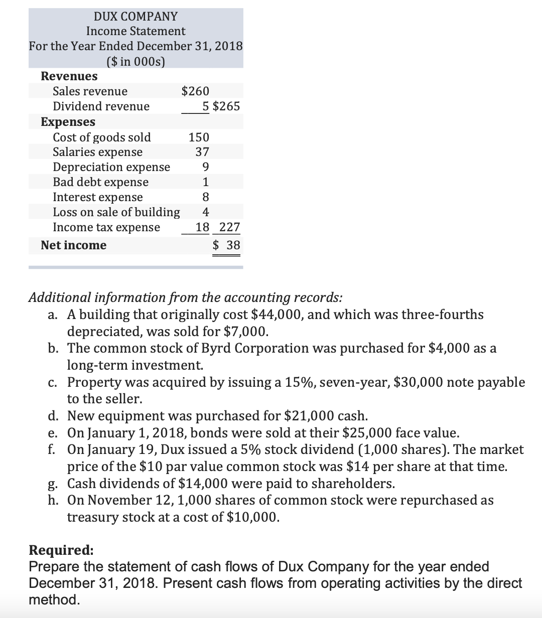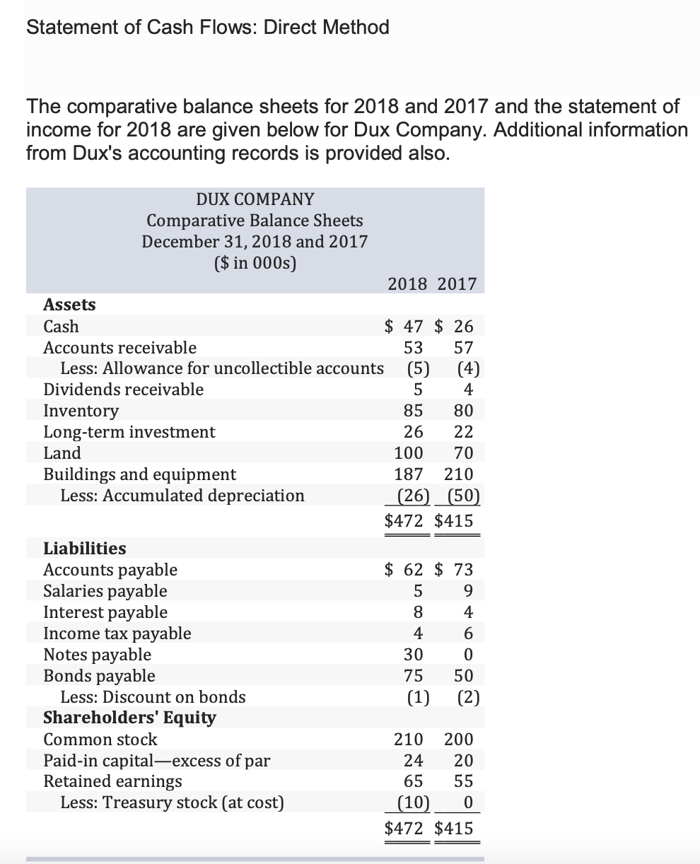 Statement of Cash Flows: Direct Method The comparative balance she...