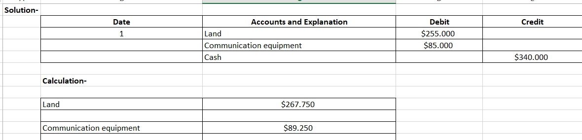Acquired land and communication equipment in a lump-sum purchase. T...
