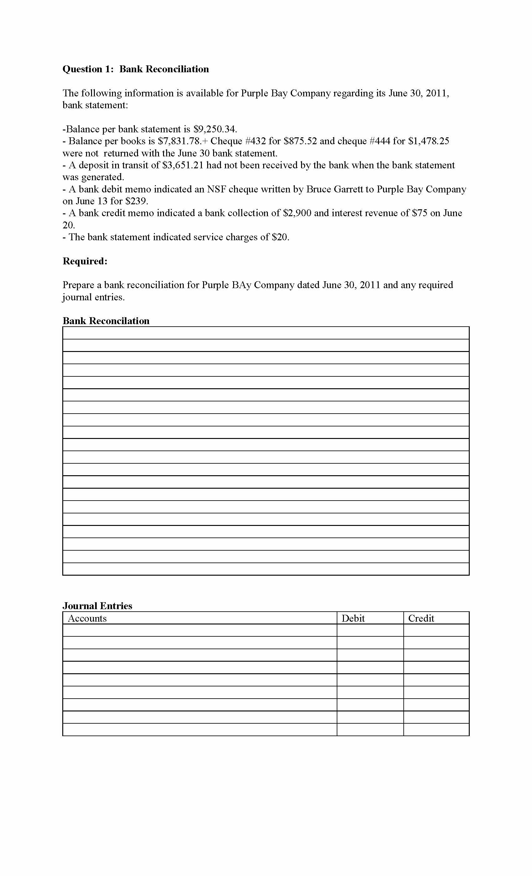 Question 1: Bank Reconciliation The following information is avail...