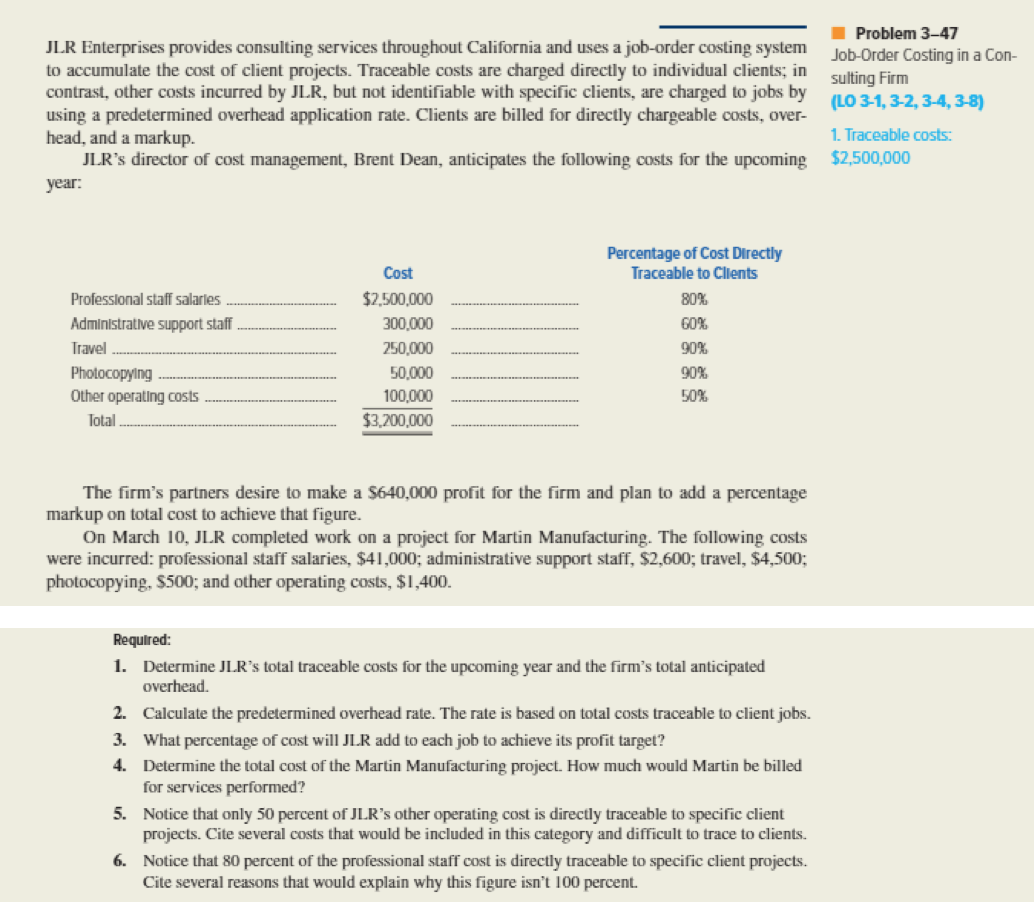 Problem 3-47 JLR Enterprises provides consulting services througho...