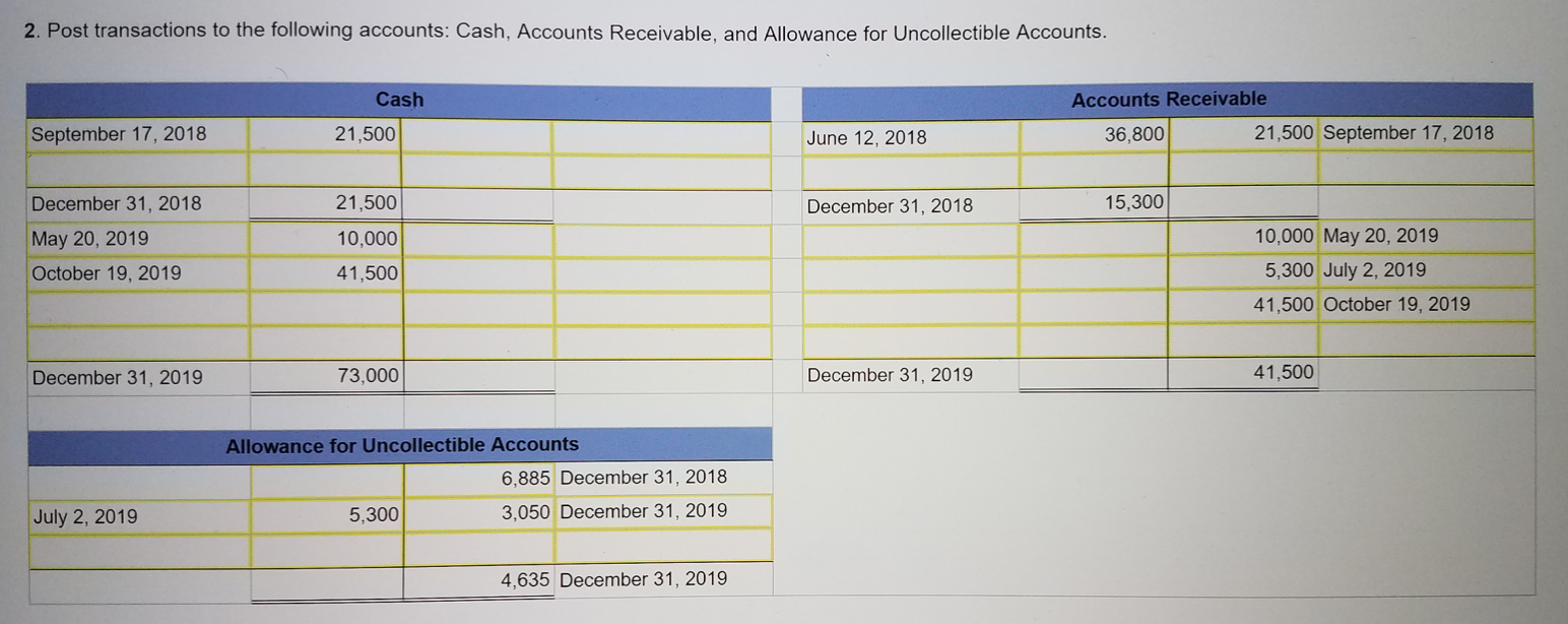 2. Post transactions to the following accounts: Cash, Accounts Rece...