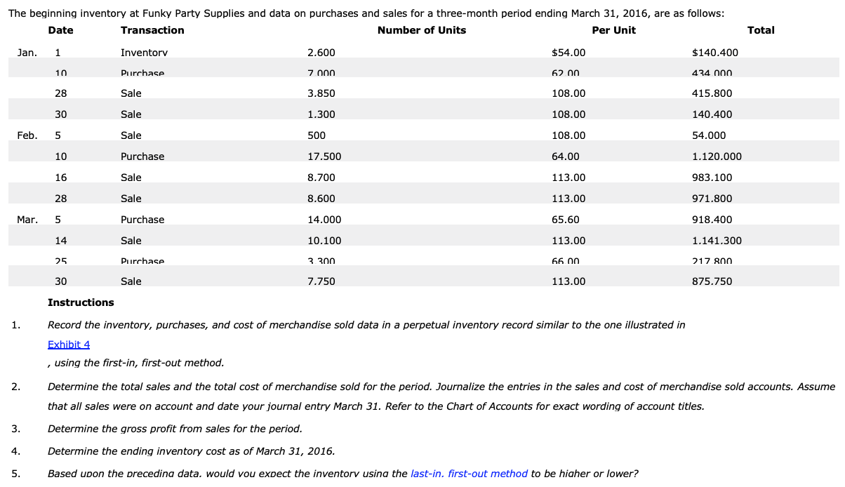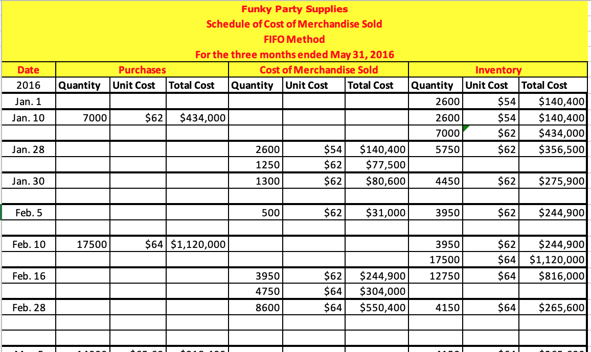 The beginning inventory at Funky Party Supplies and data on purchas...