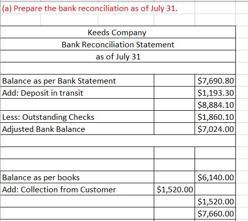 On July 31, 2017, Keeds Company had a cash balance per books of $6,...