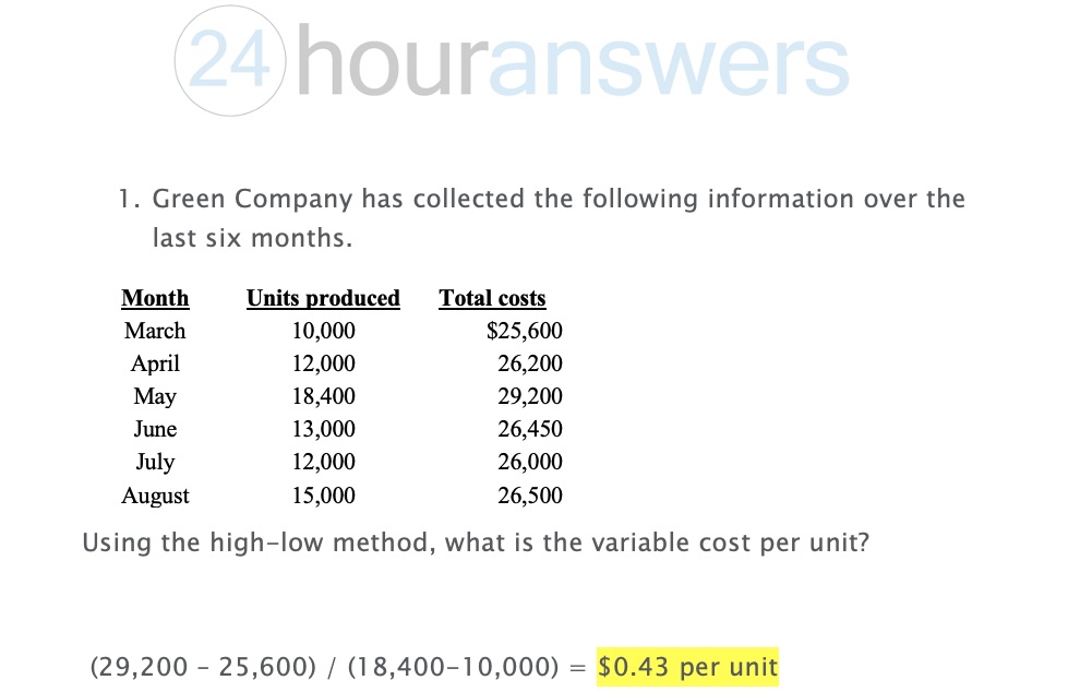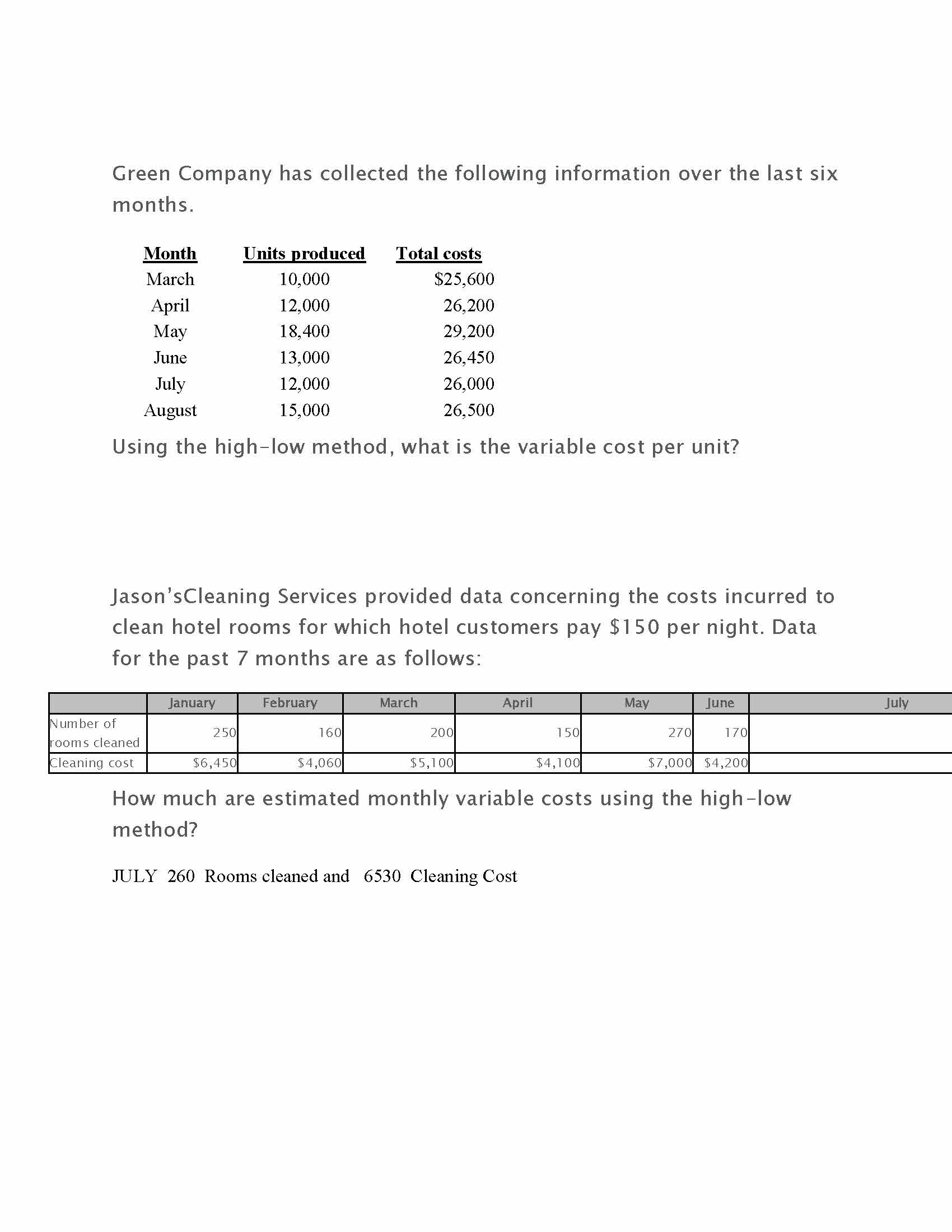 Green Company has collected the following information over the last...
