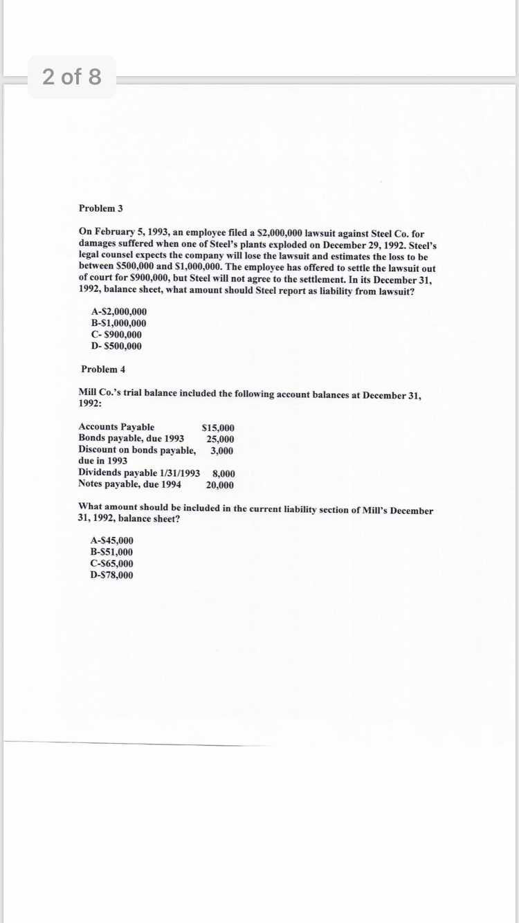 2 of 8 Problem 3 On February 5, 1993, an employee filed a $2,000,...