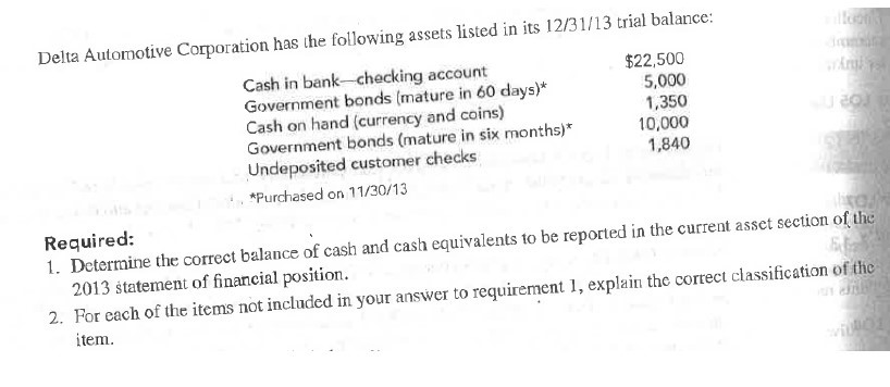 Delta Automotive Corporation has the following assets listed in its...
