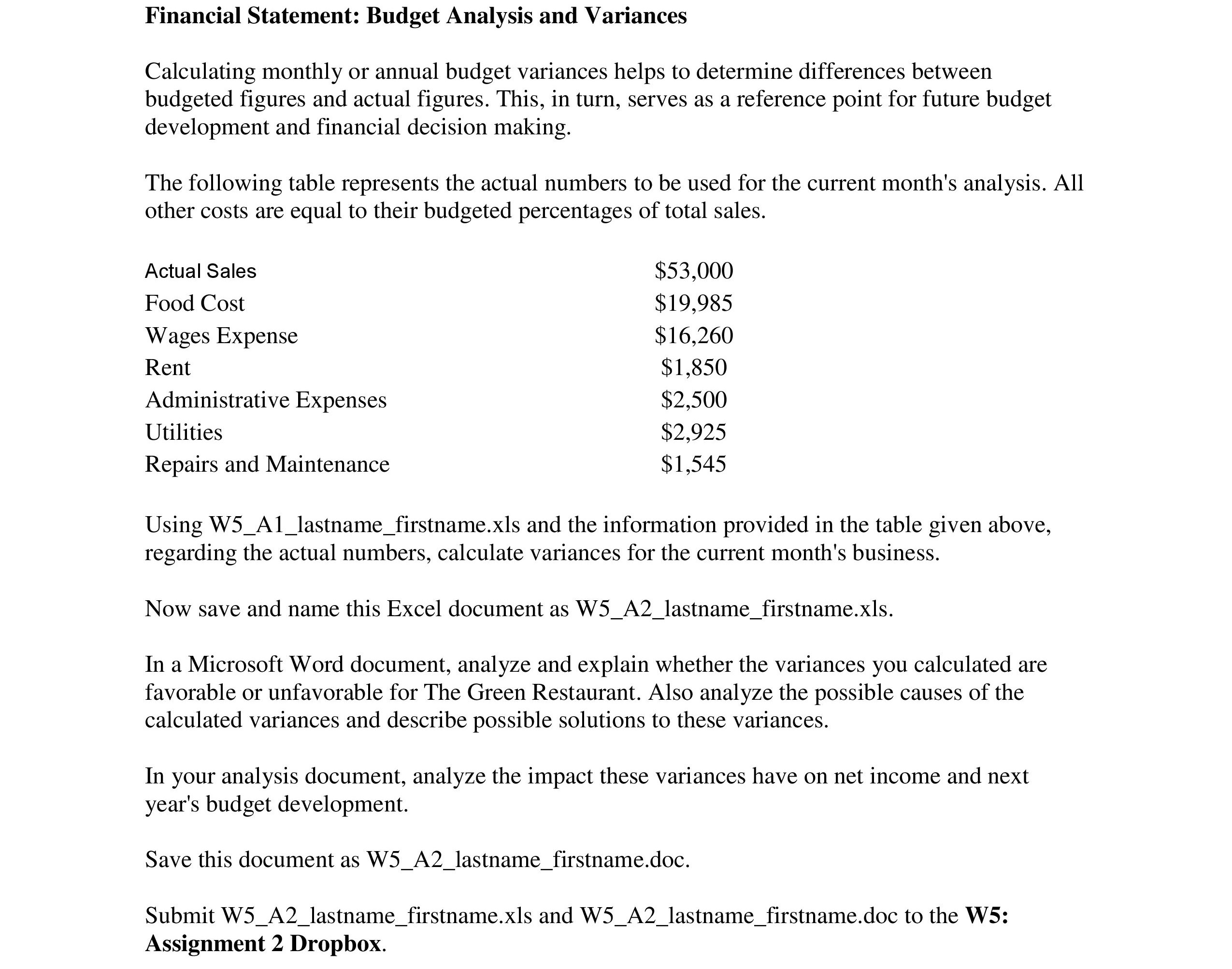 Financial Statement: Budget Analysis and Variances Calculating mon...