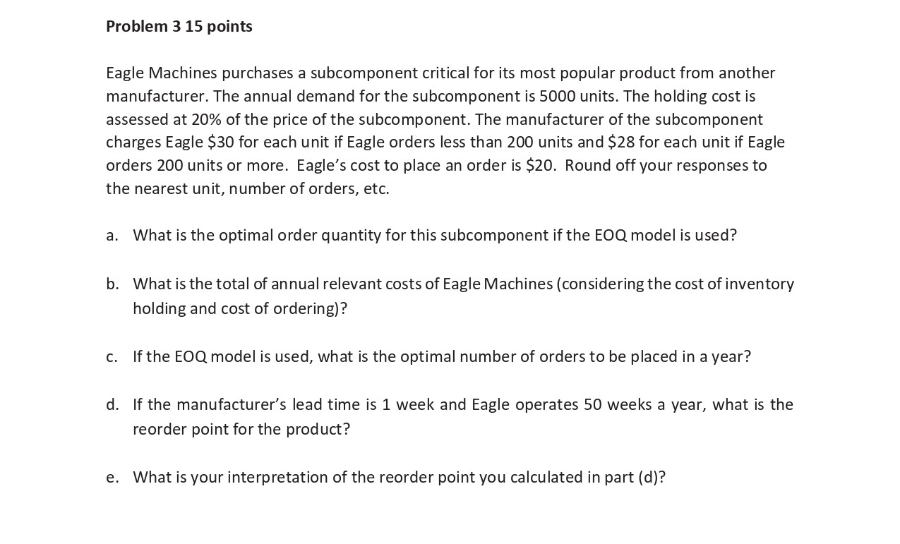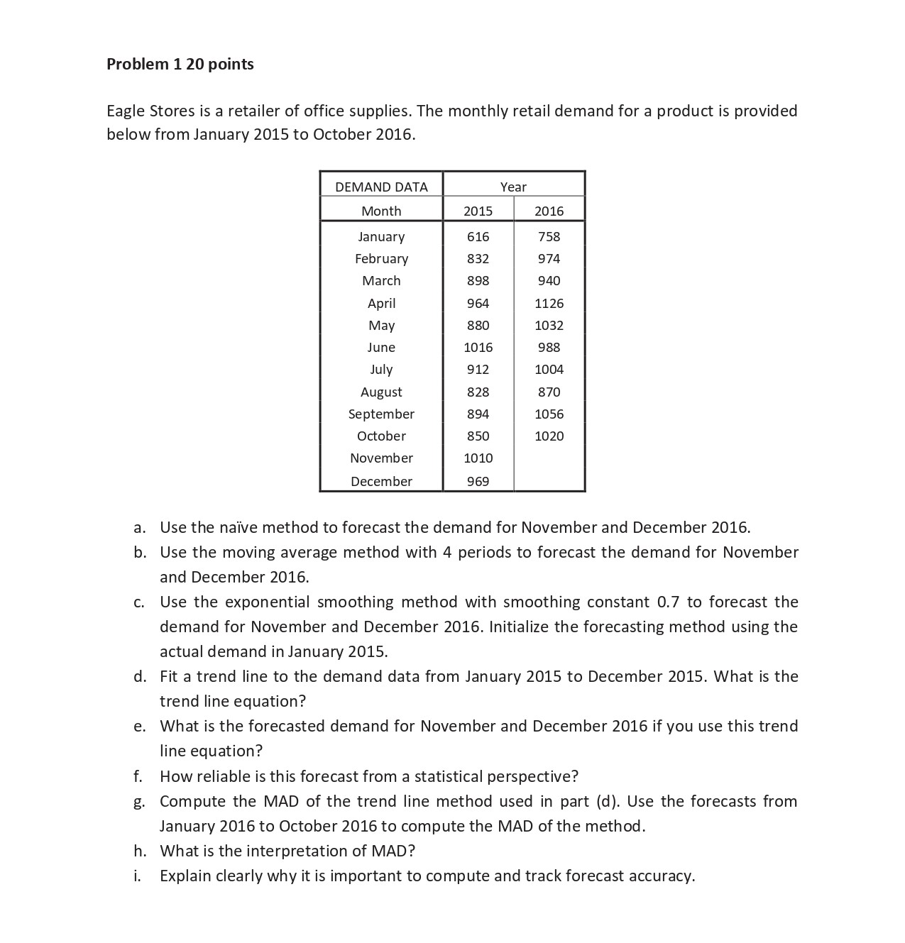 Problem 1 20 points Eagle Stores is a retailer of office supplies....