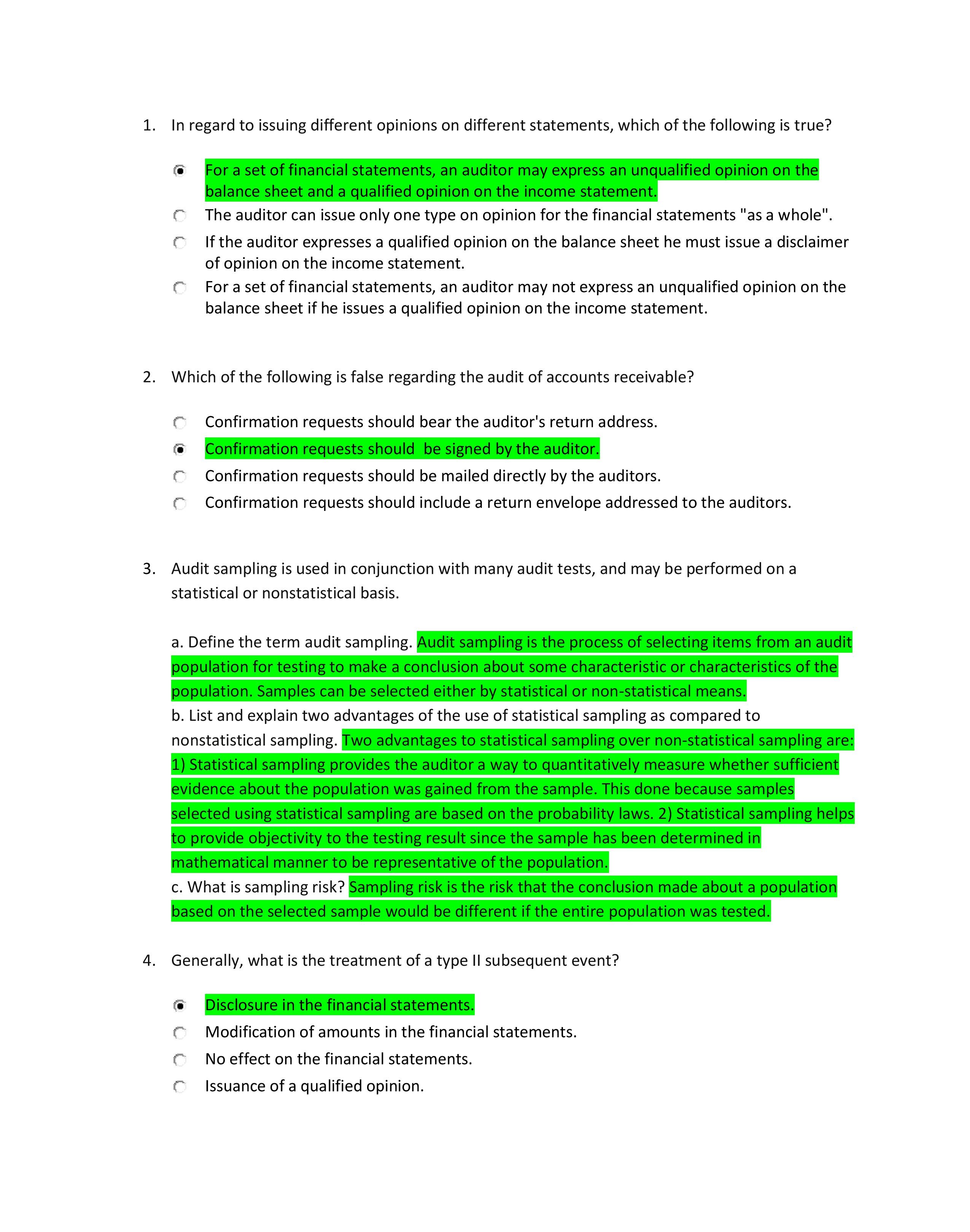 1. In regard to issuing different opinions on different statements,...