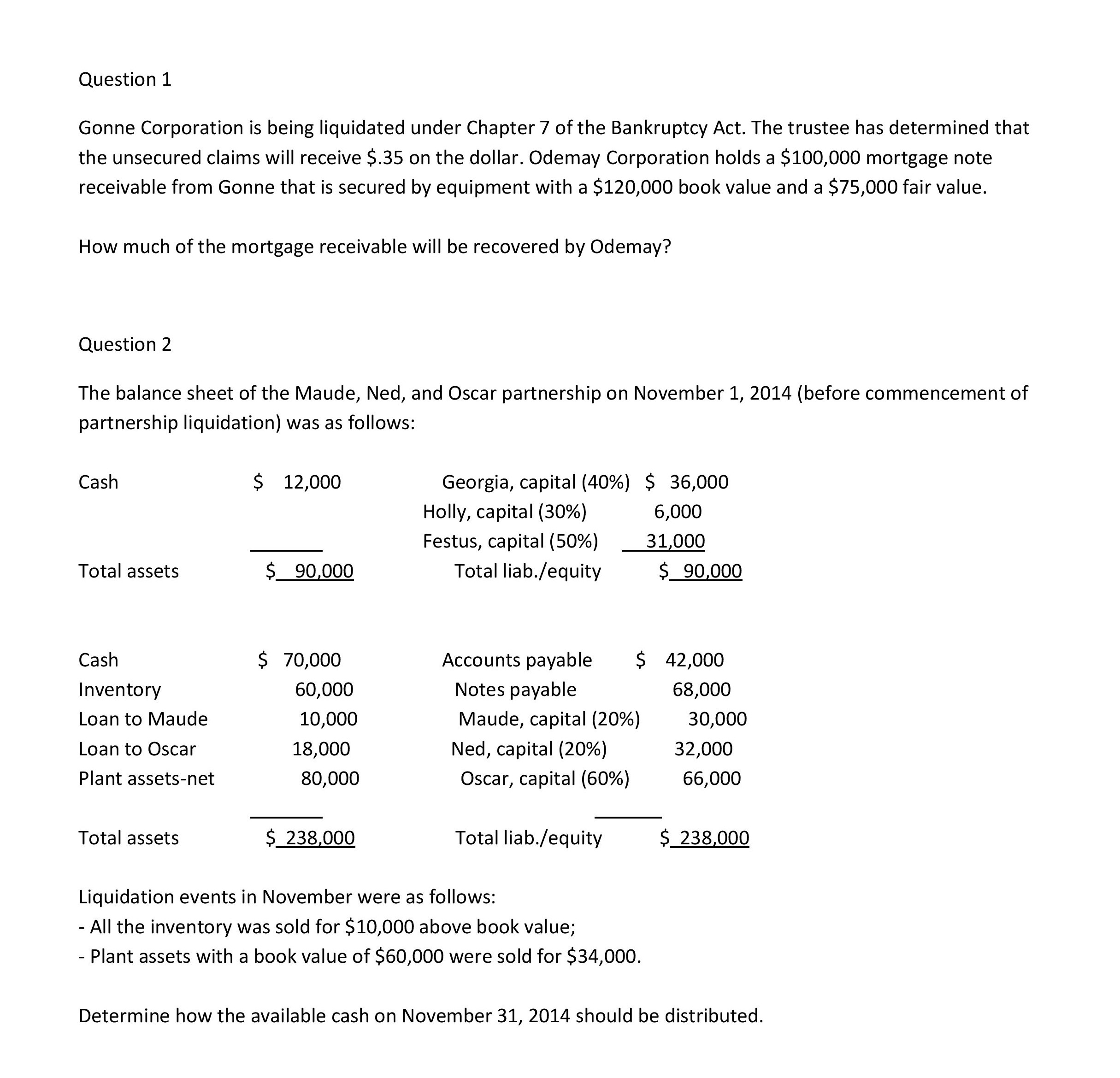 Question 1 Gonne Corporation is being liquidated under Chapter 7 o...