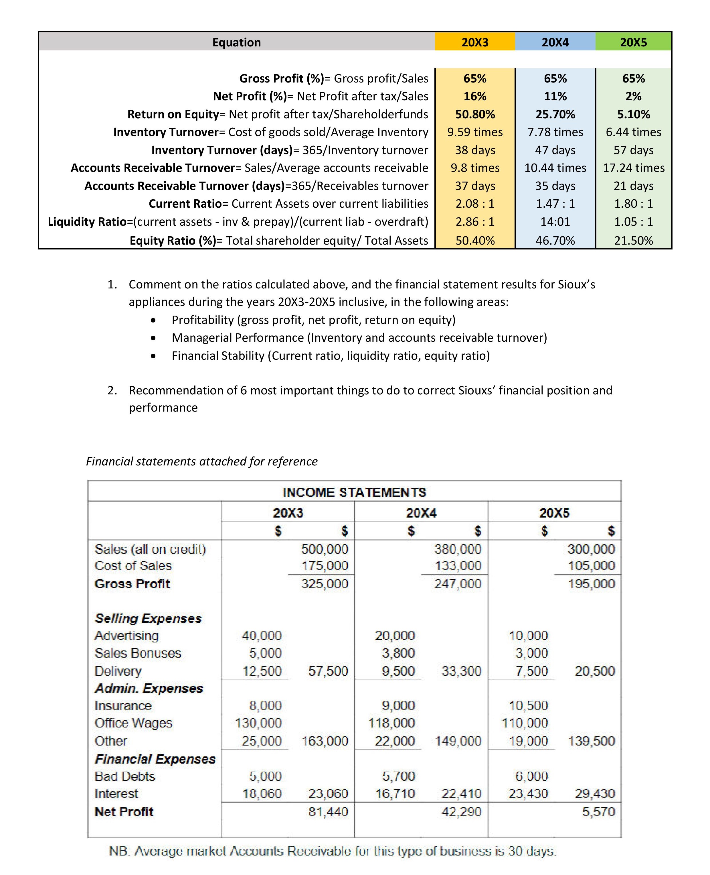 Equation 20X3 20X4 20X5 Gross Profit (%)= Gross profit/Sales 6...