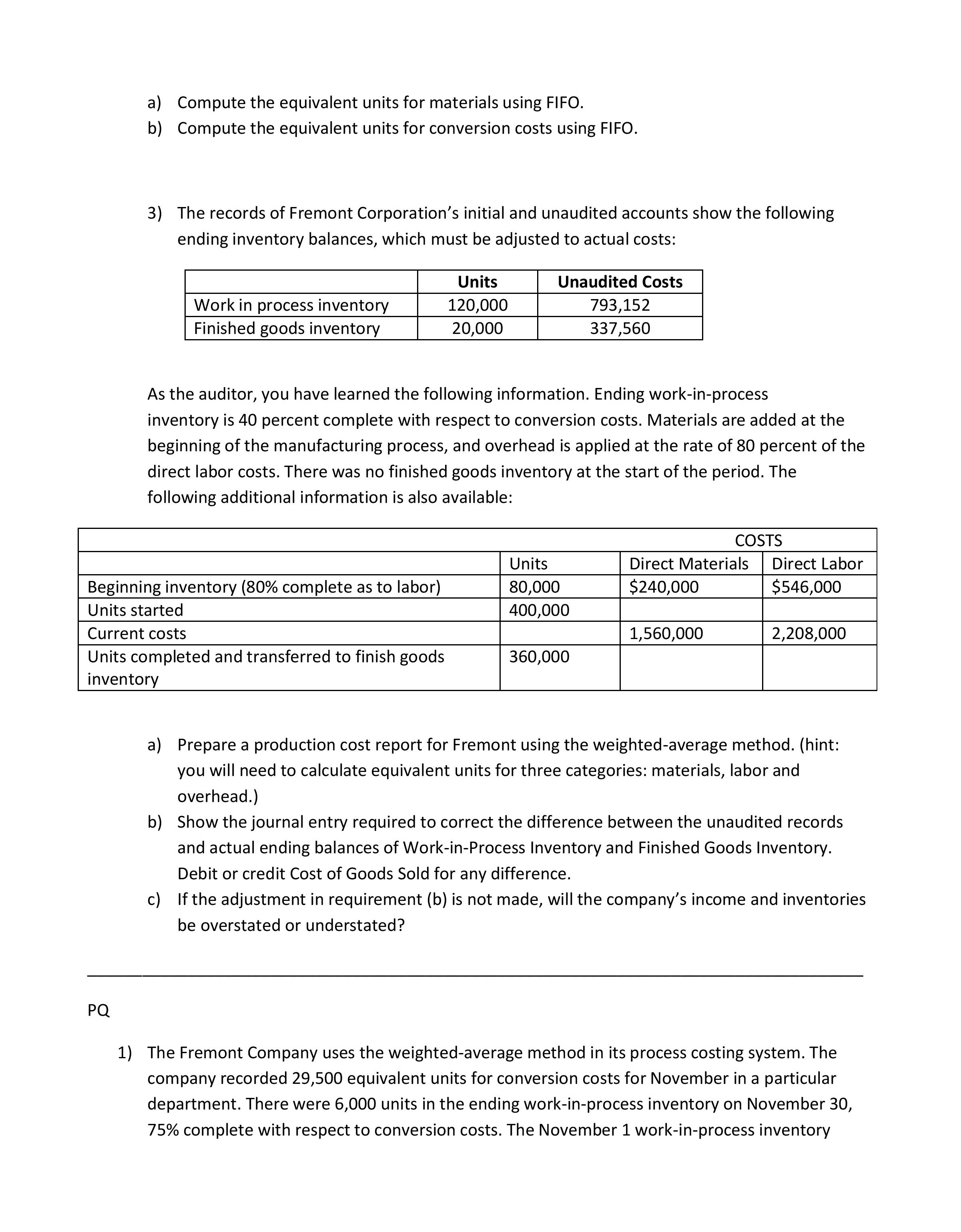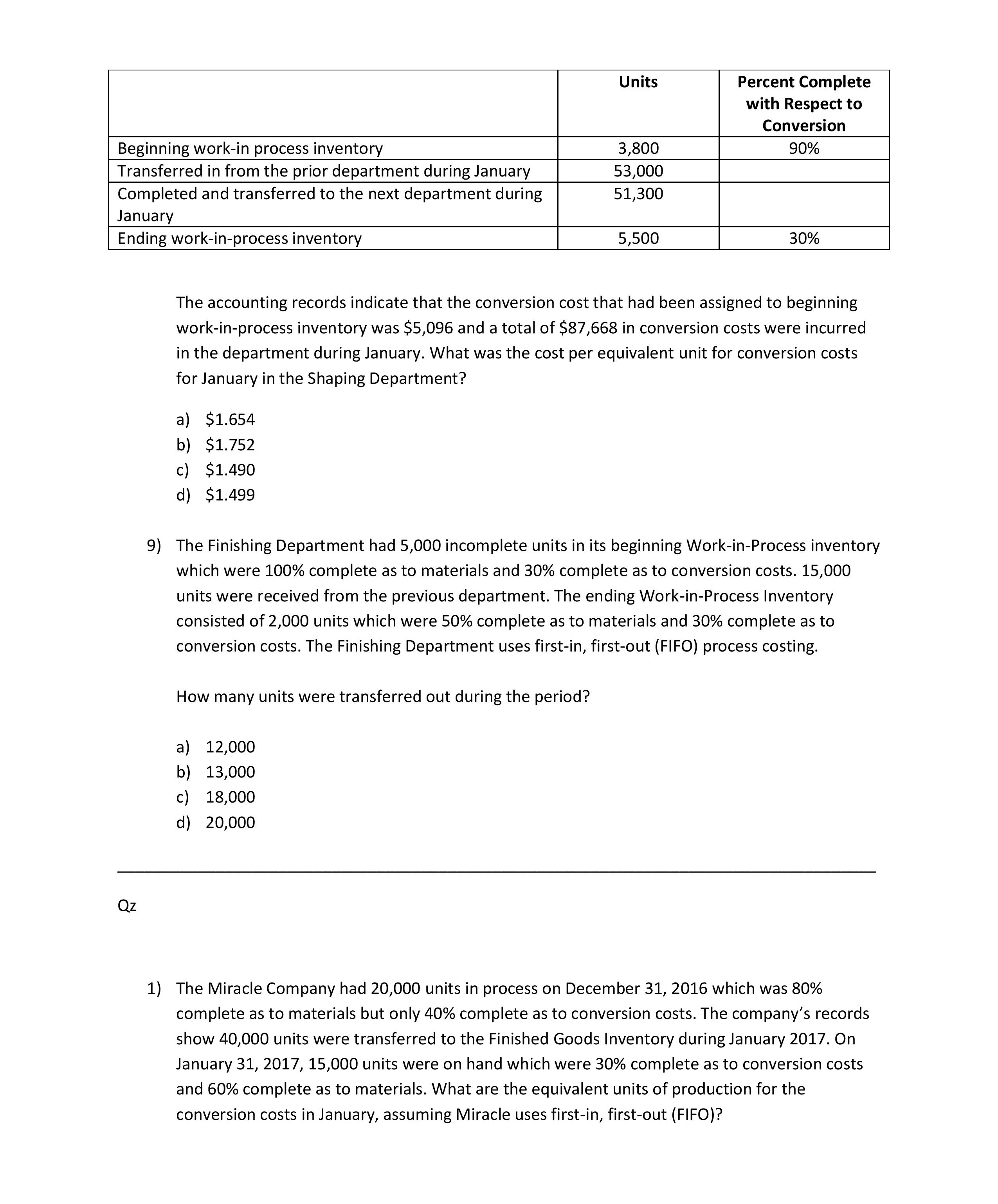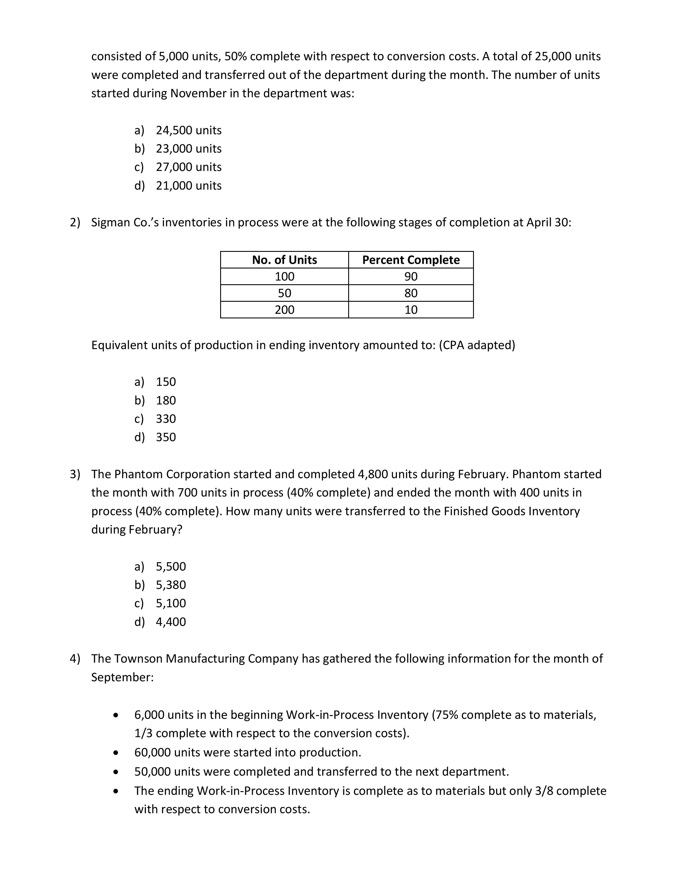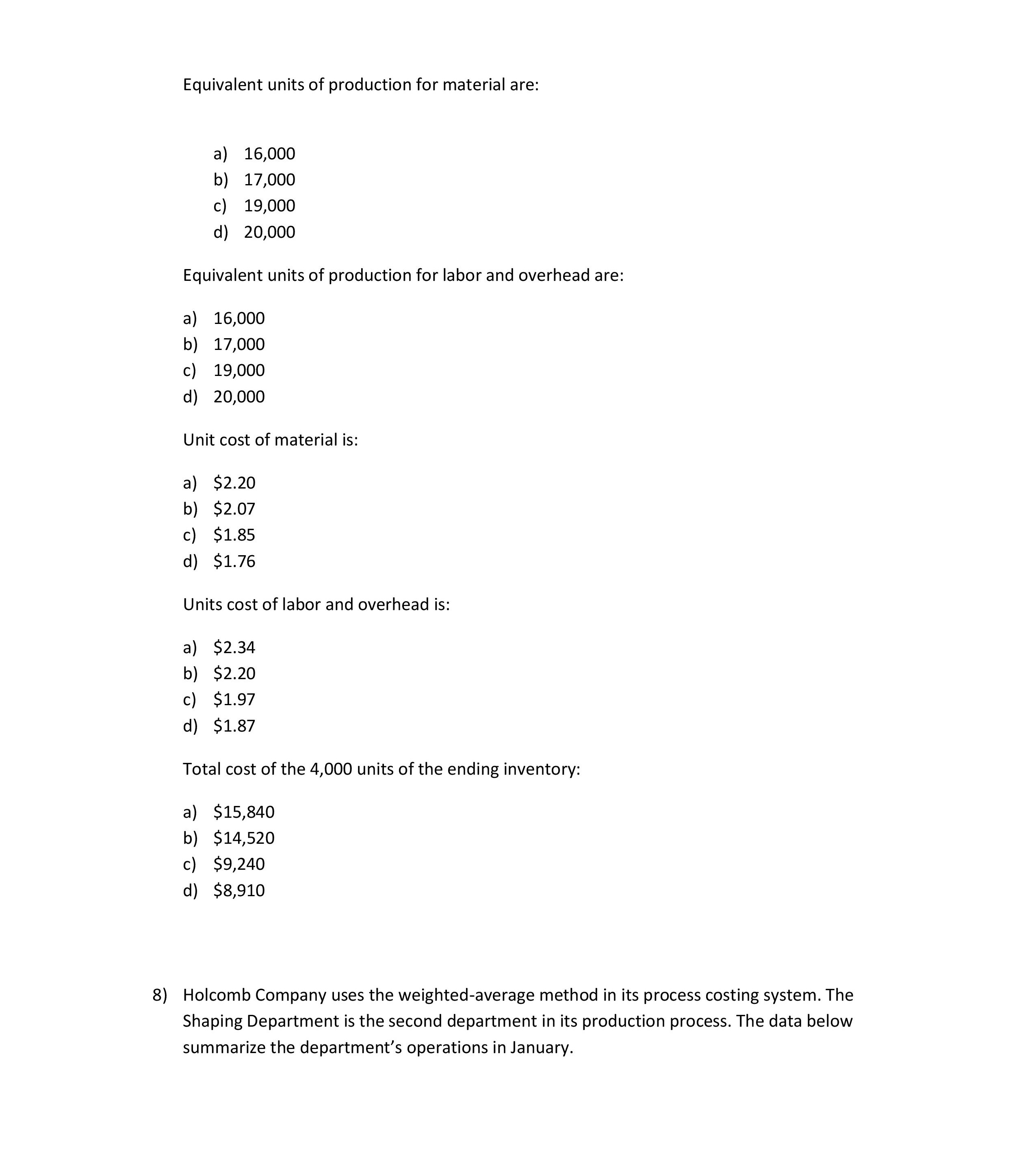 DB 1) Aaron Company has a process costing system. All materials ar...