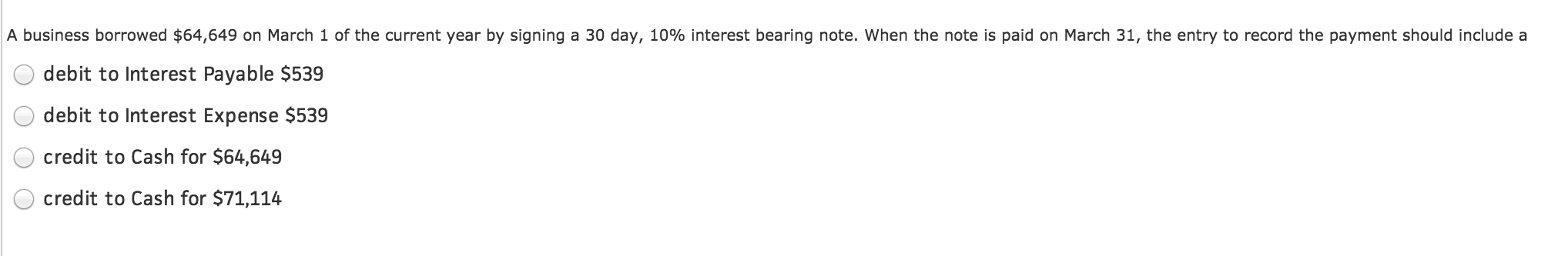 A business borrowed $64,649 on March 1 of the current year by signi...