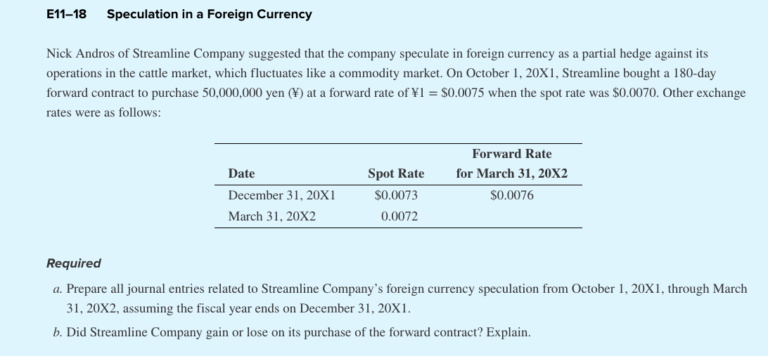 E11-18 Speculation in a Foreign Currency Nick Andros of Streamlin...