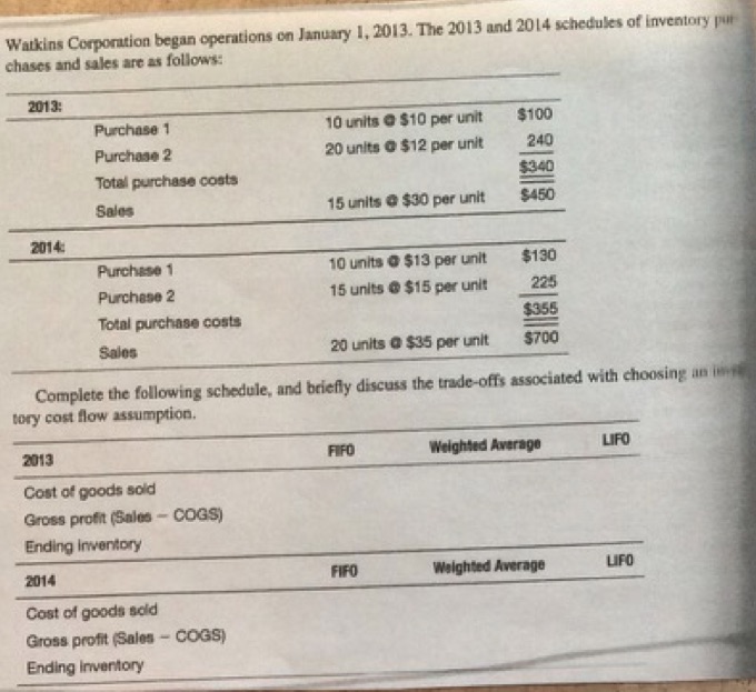 Watkins Corporation began operations on January 1. 2013. The 2013 a...