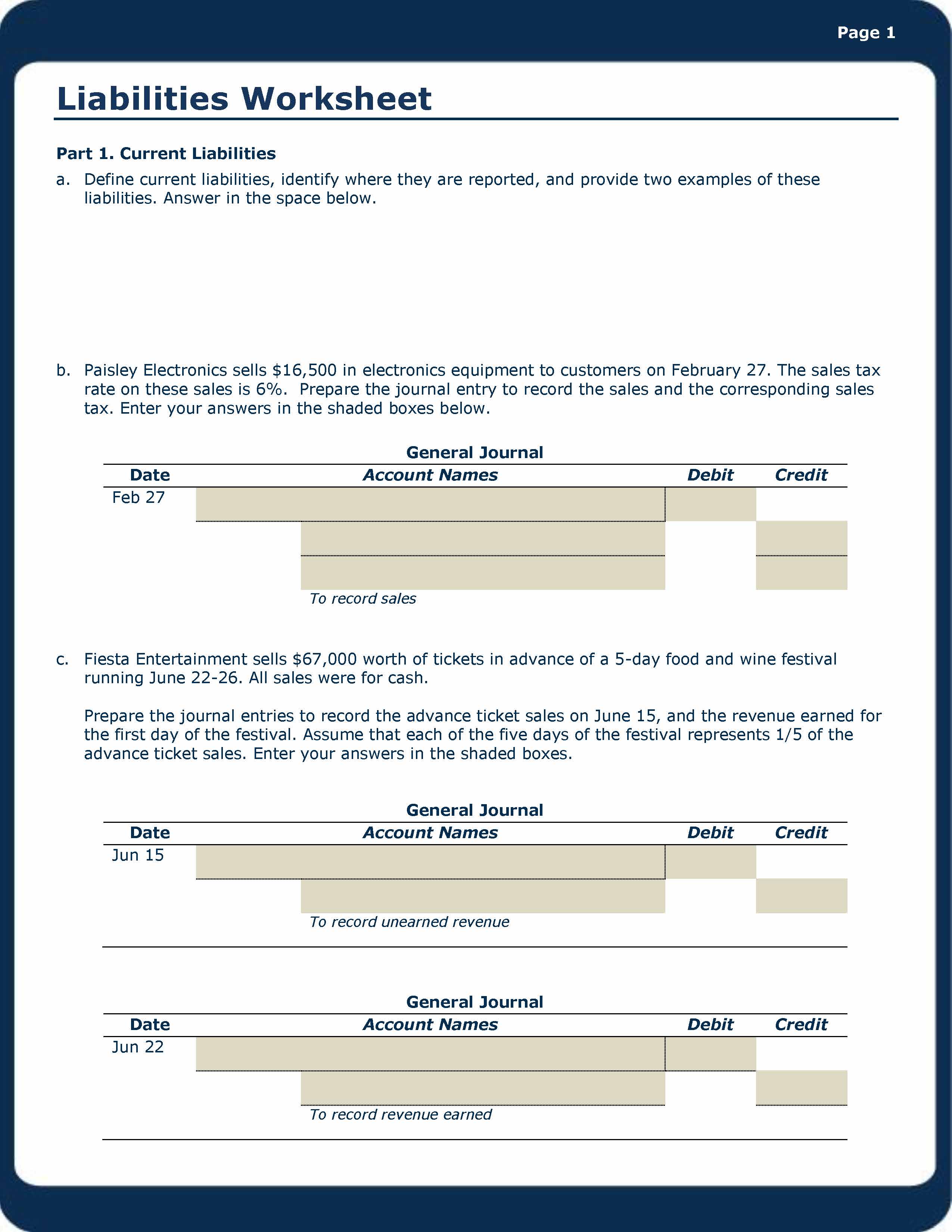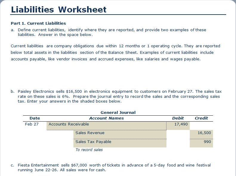 Liabilities Worksheet Part Current Liabilities a. Define current ...