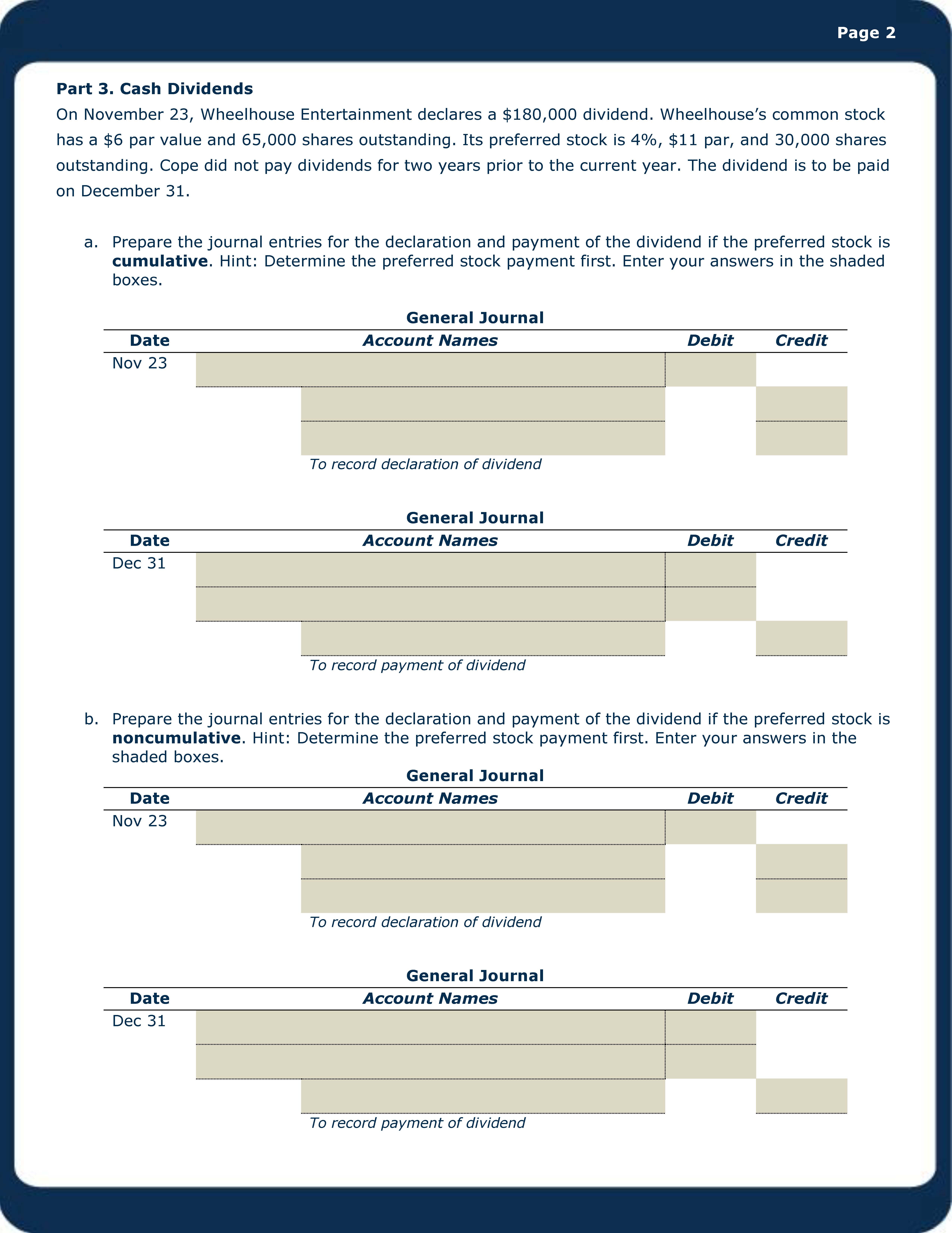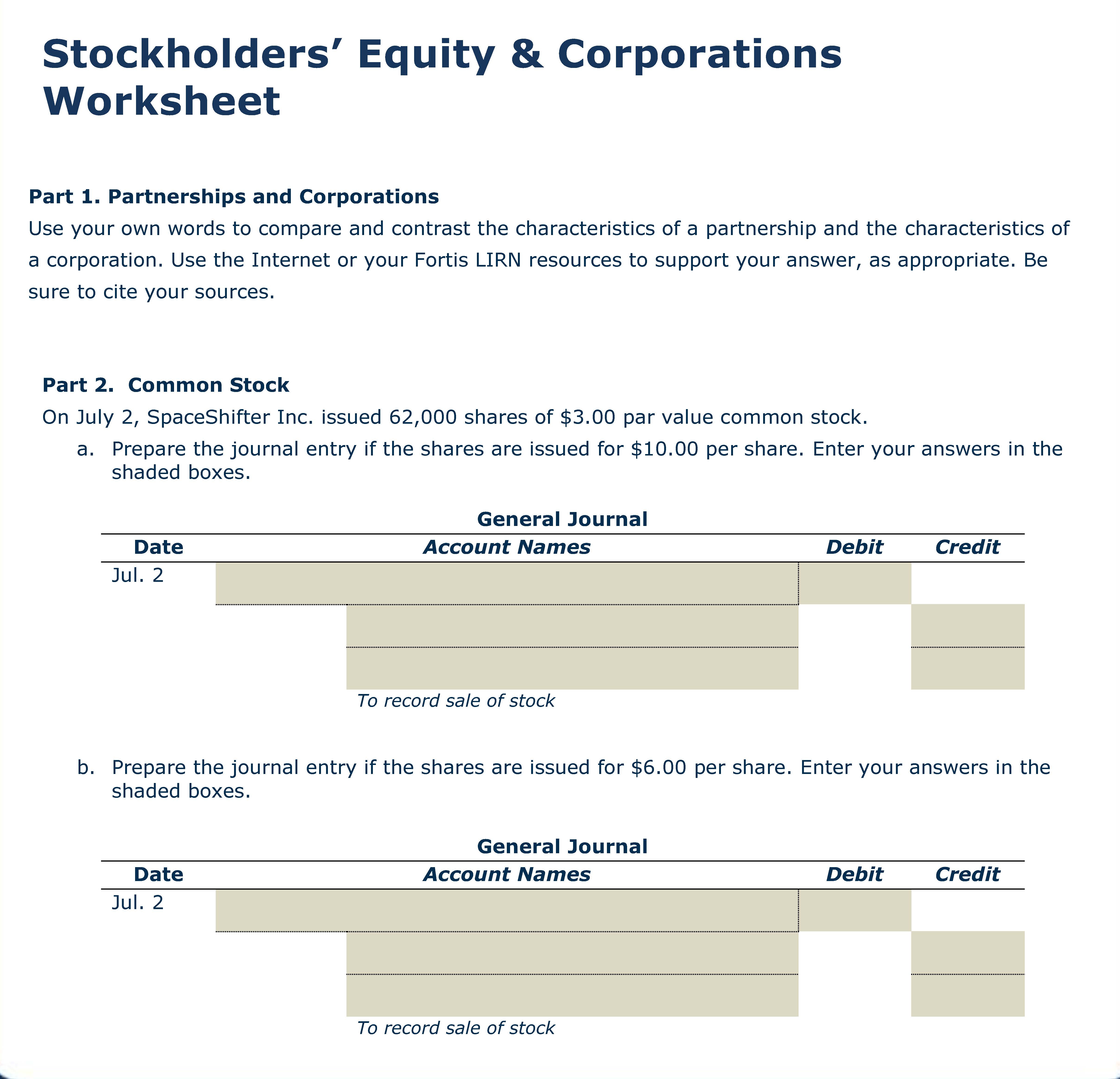 Stockholders' Equity & Corporations Worksheet Part 1. Partner...