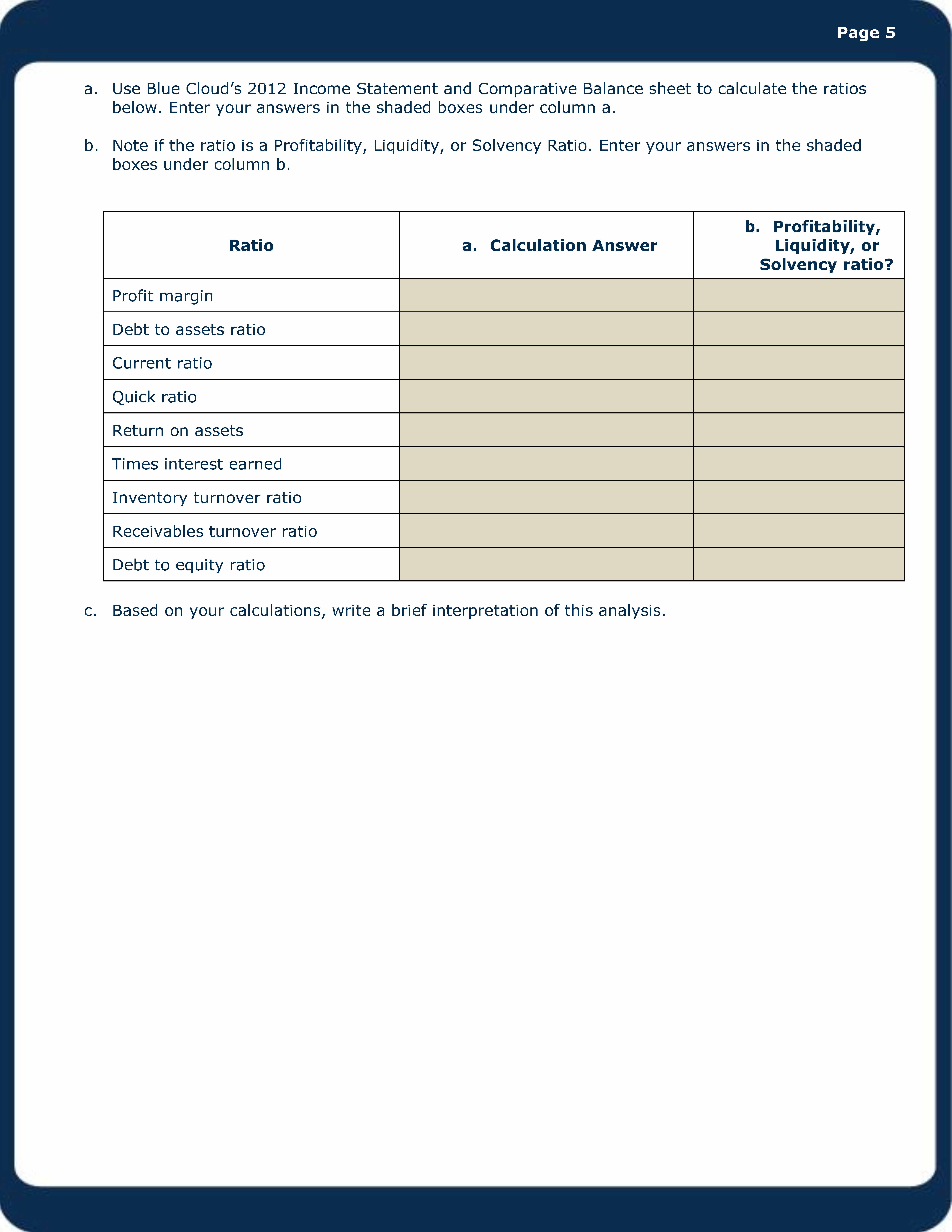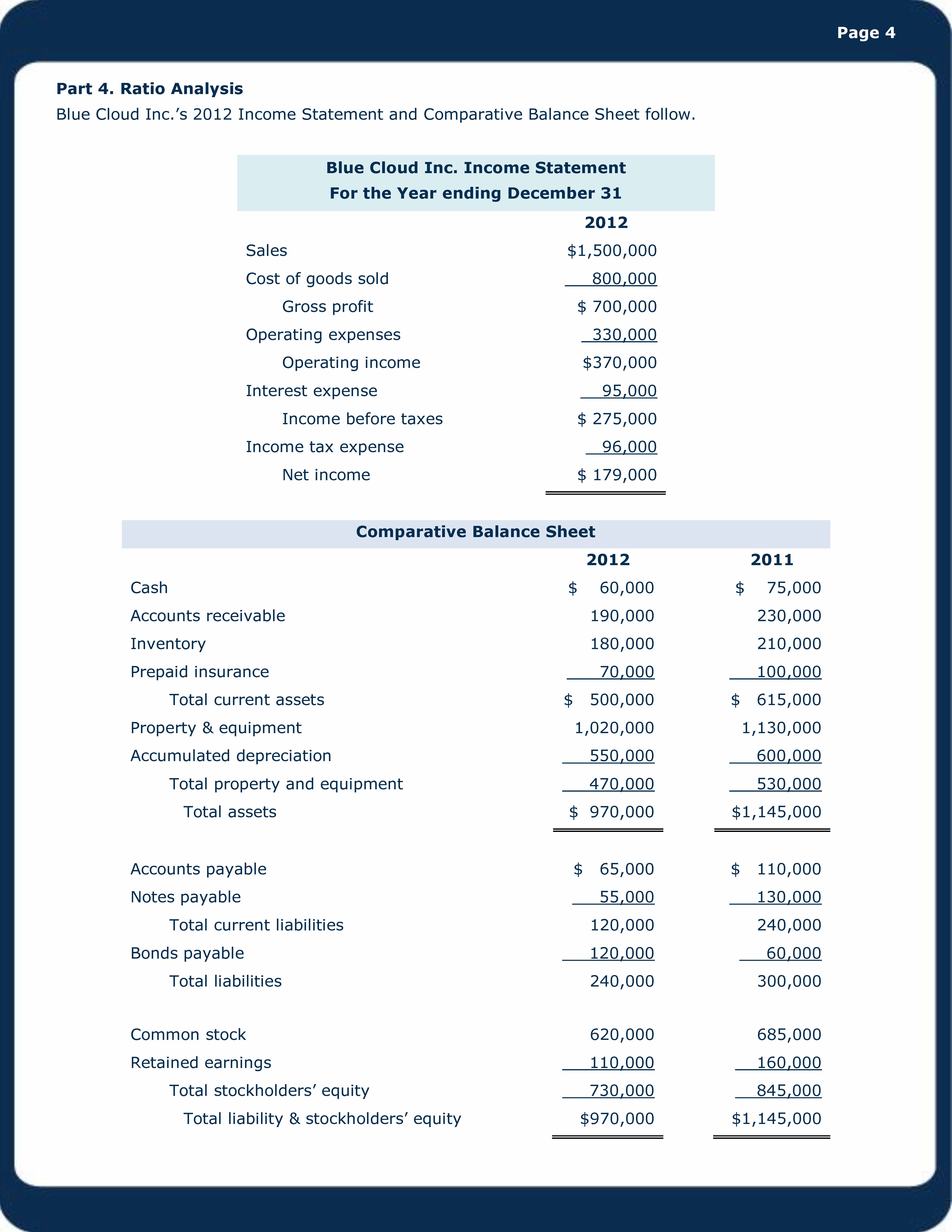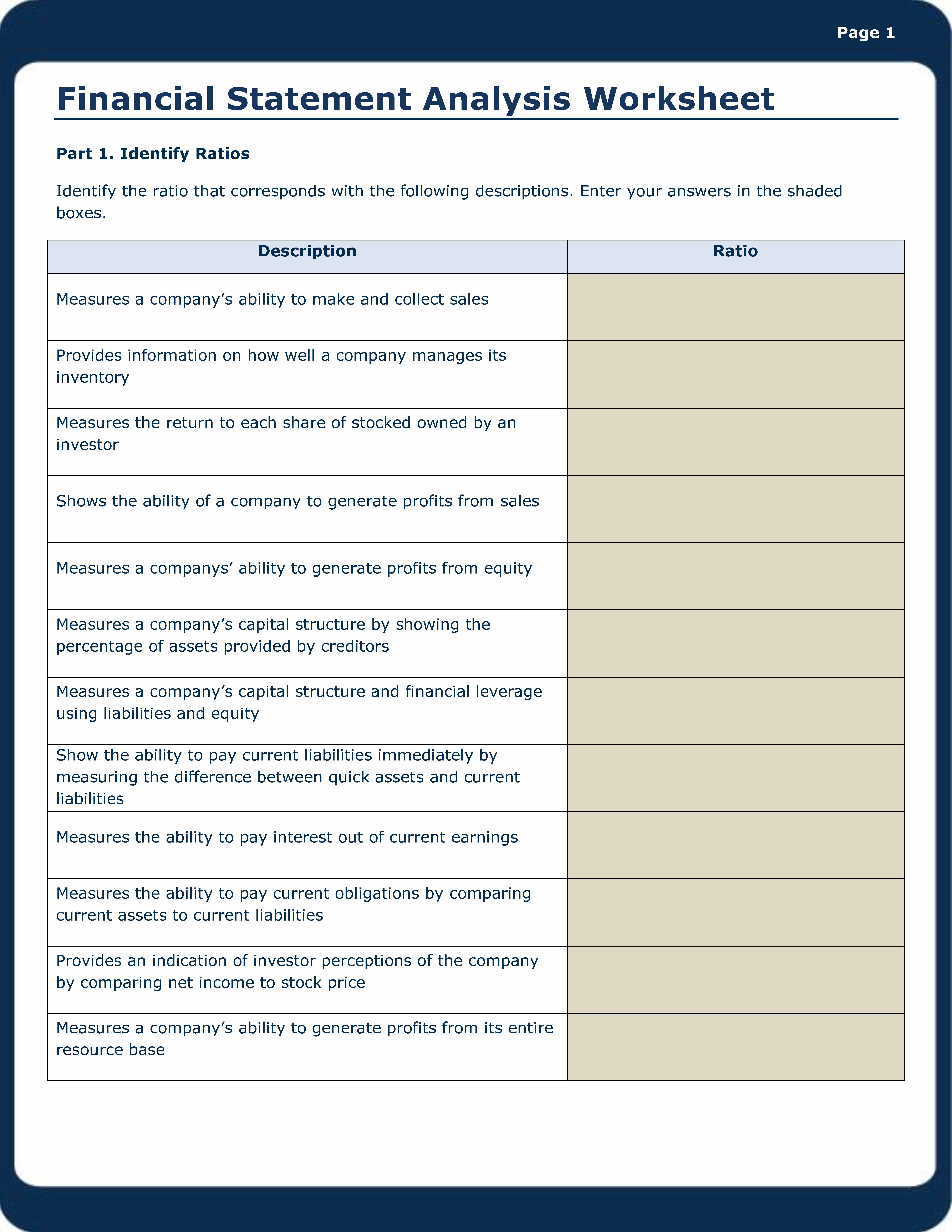 Financial Statement Analysis Worksheet Part 1. Identify Ratios Id...