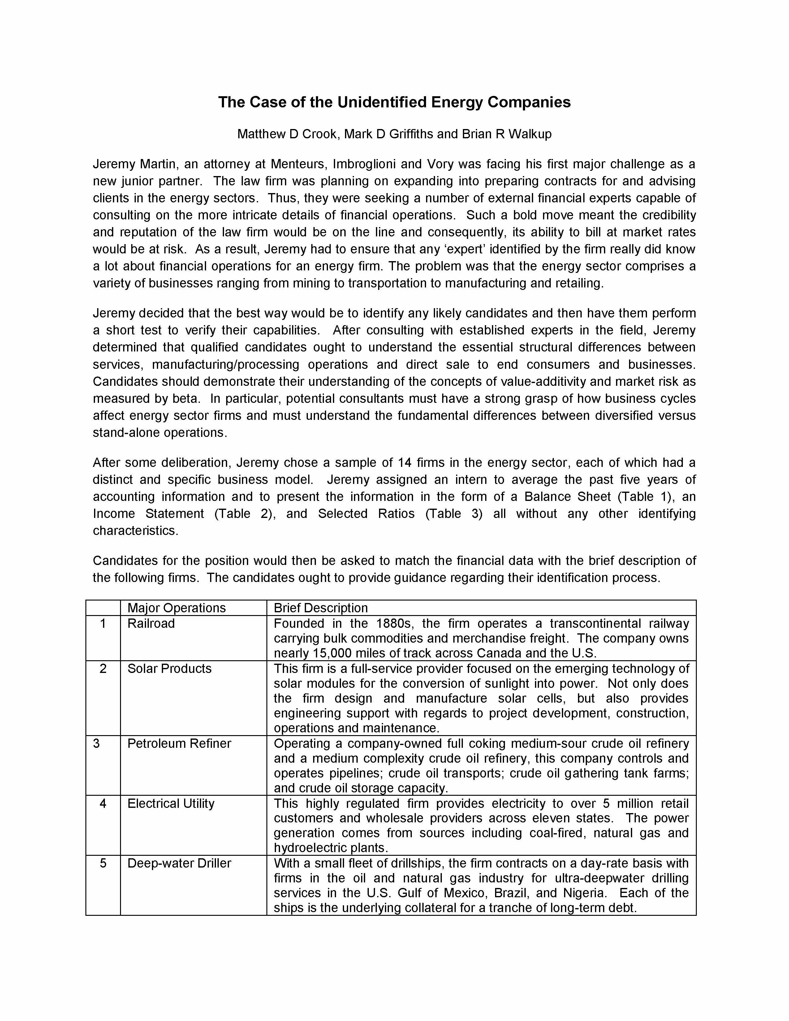 The Case of the Unidentified Energy Companies Matthew D Crook, Mar...
