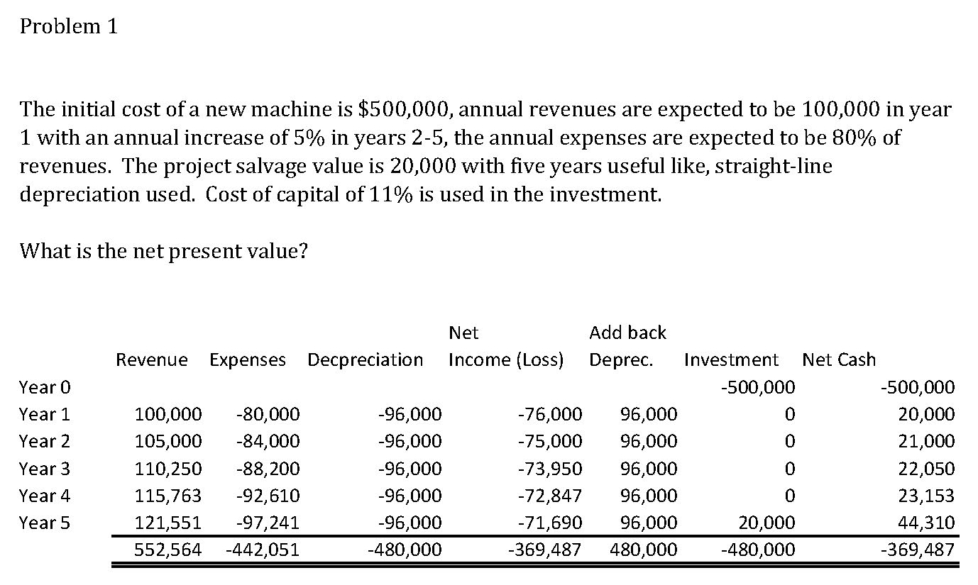 Problem 1 The initial coSt of a new machine is $500,000, annual re...