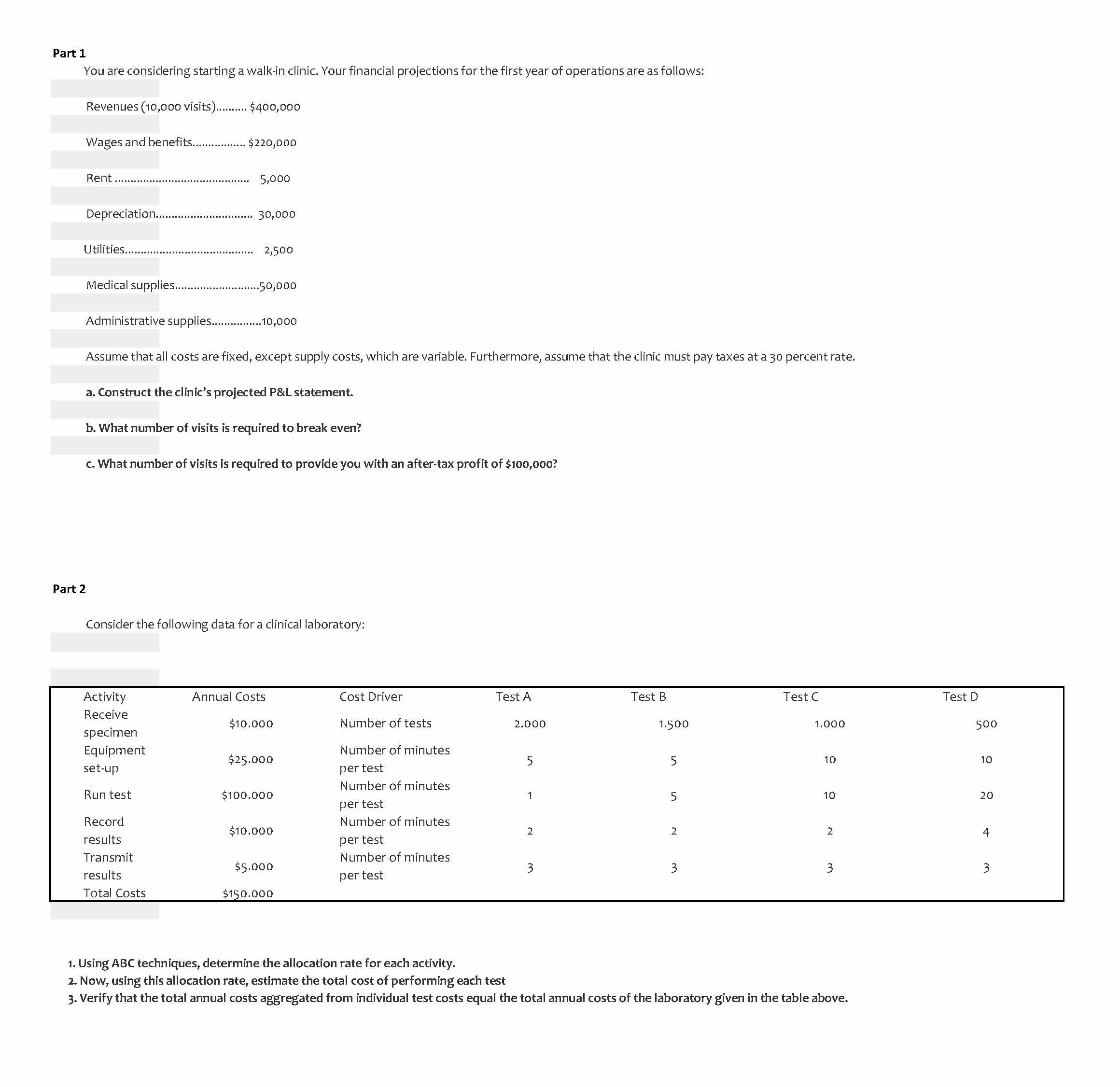 Part 1 You are considering starting a walk-in clinic. Your financi...