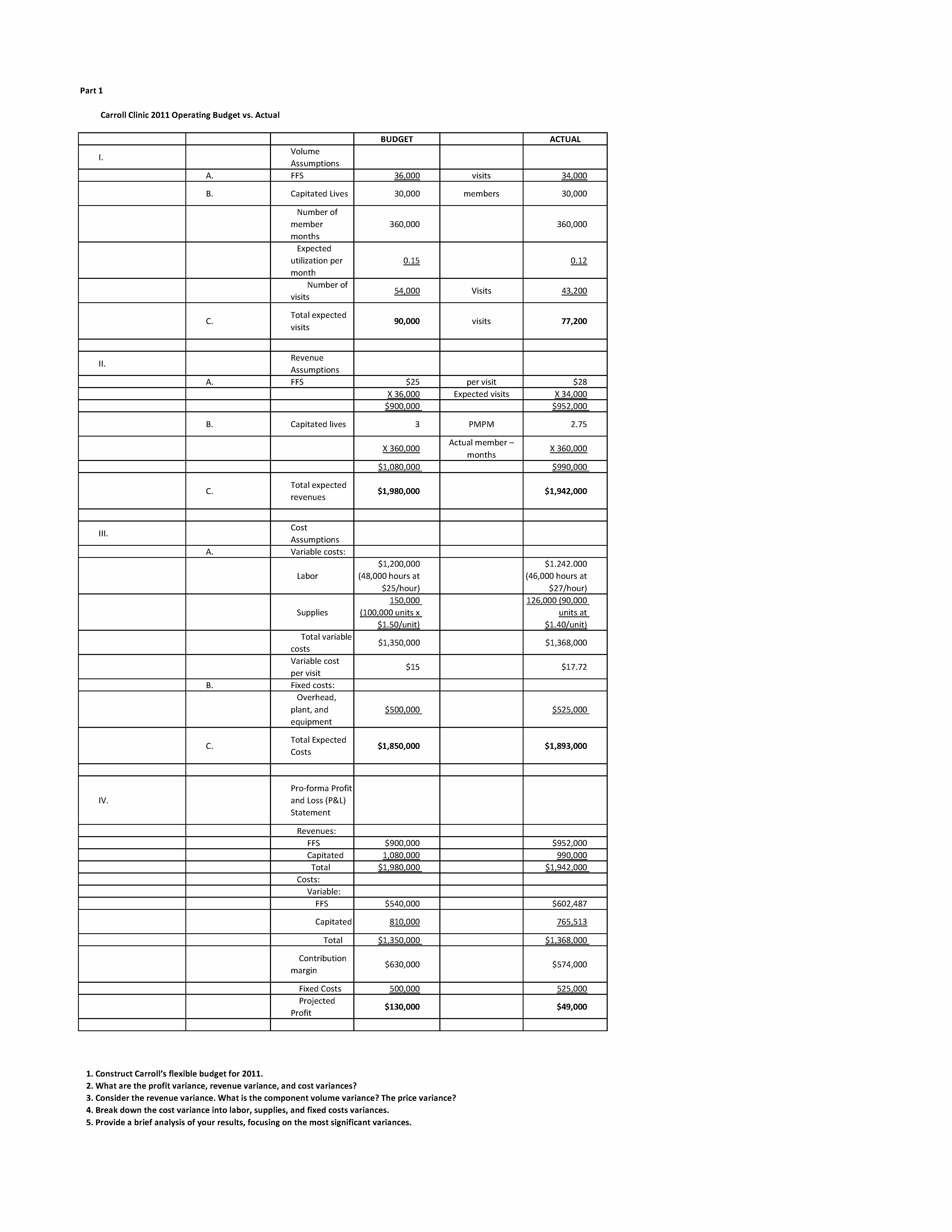 Part 1 Carroll Clinic 2011 Operating Budget vs. Actual BUDGET AC...