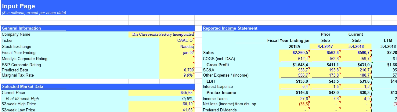 Please do a comparable valuation analysis for Cheesecake Factory us...