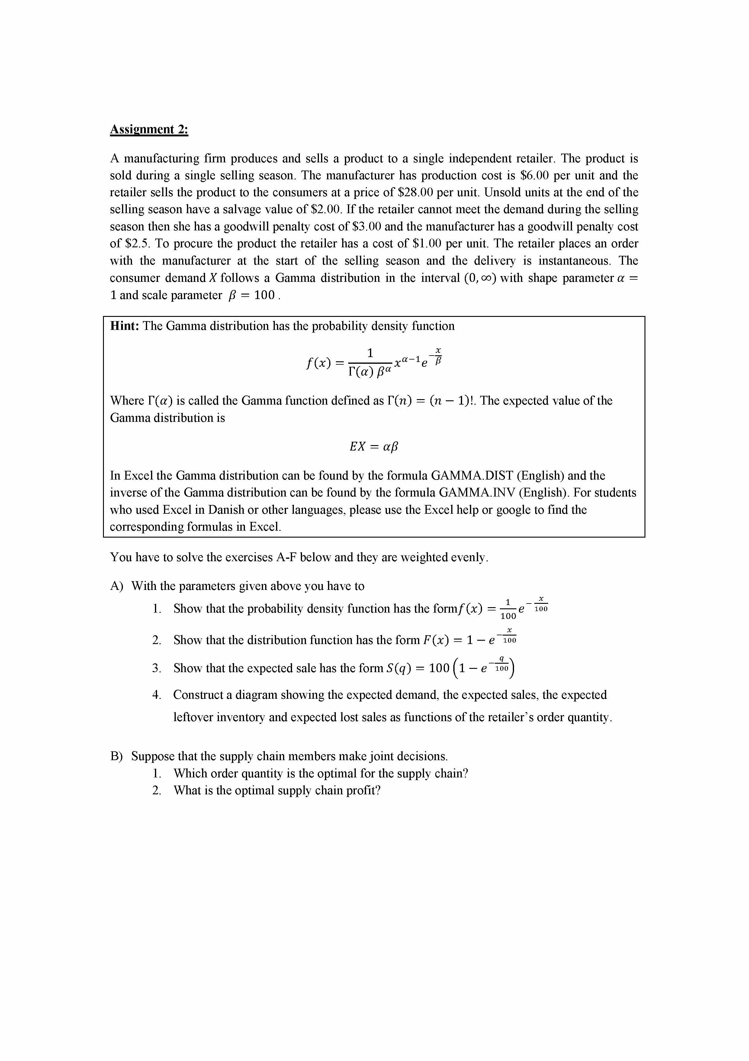 Assignment 2: A manufacturing firm produces and sells a product to...