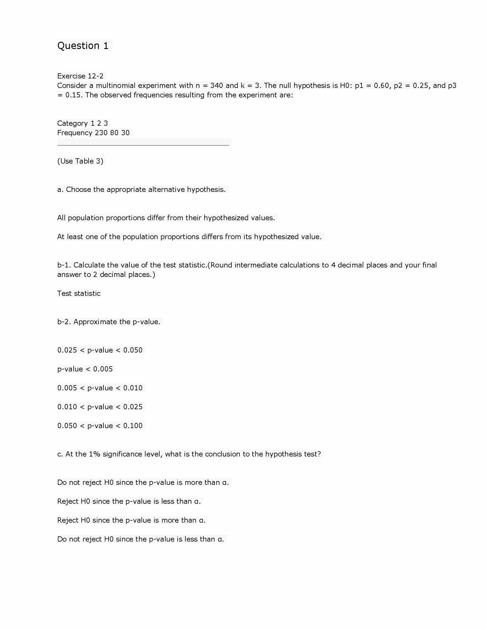 Question 1 Exercise 12-2 Consider a multinomial experiment with n...