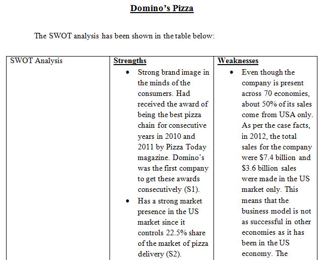 Dominoes Pizza 1. Provide two ST, two WO, two SO, two WT strateg...