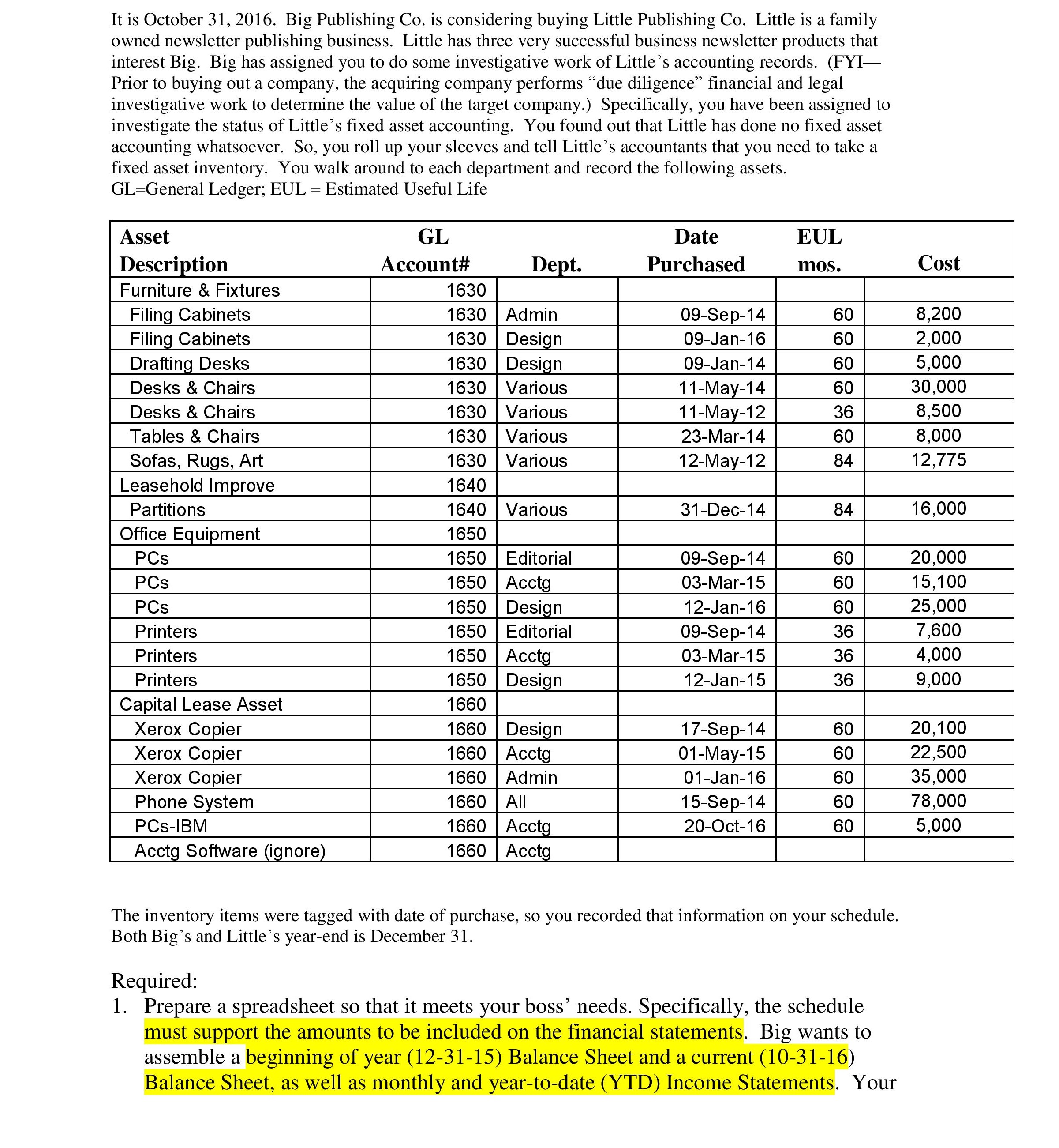 It is October 31, 2016. Big Publishing Co. is considering buying Li...