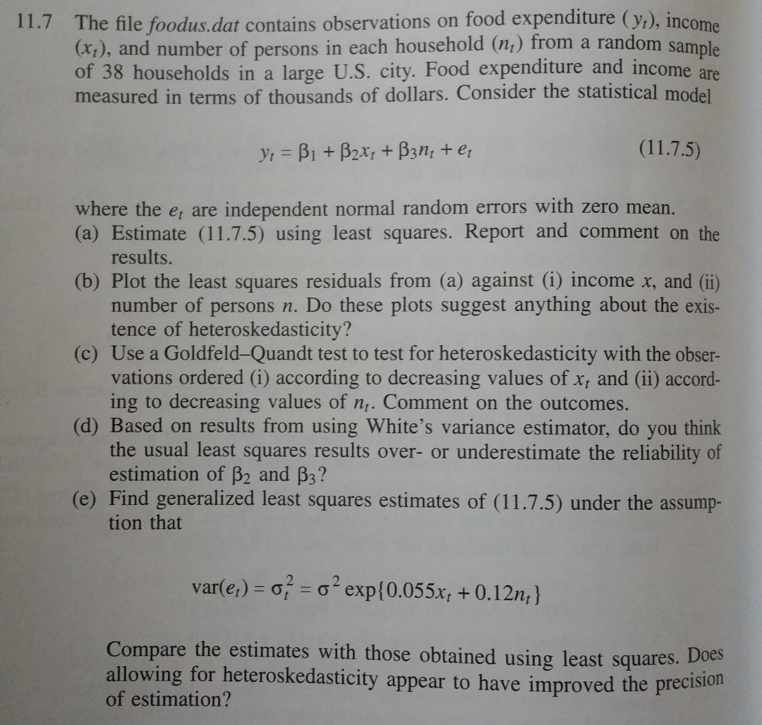 11.7 The file foodus. dat contains observations on food expenditure...