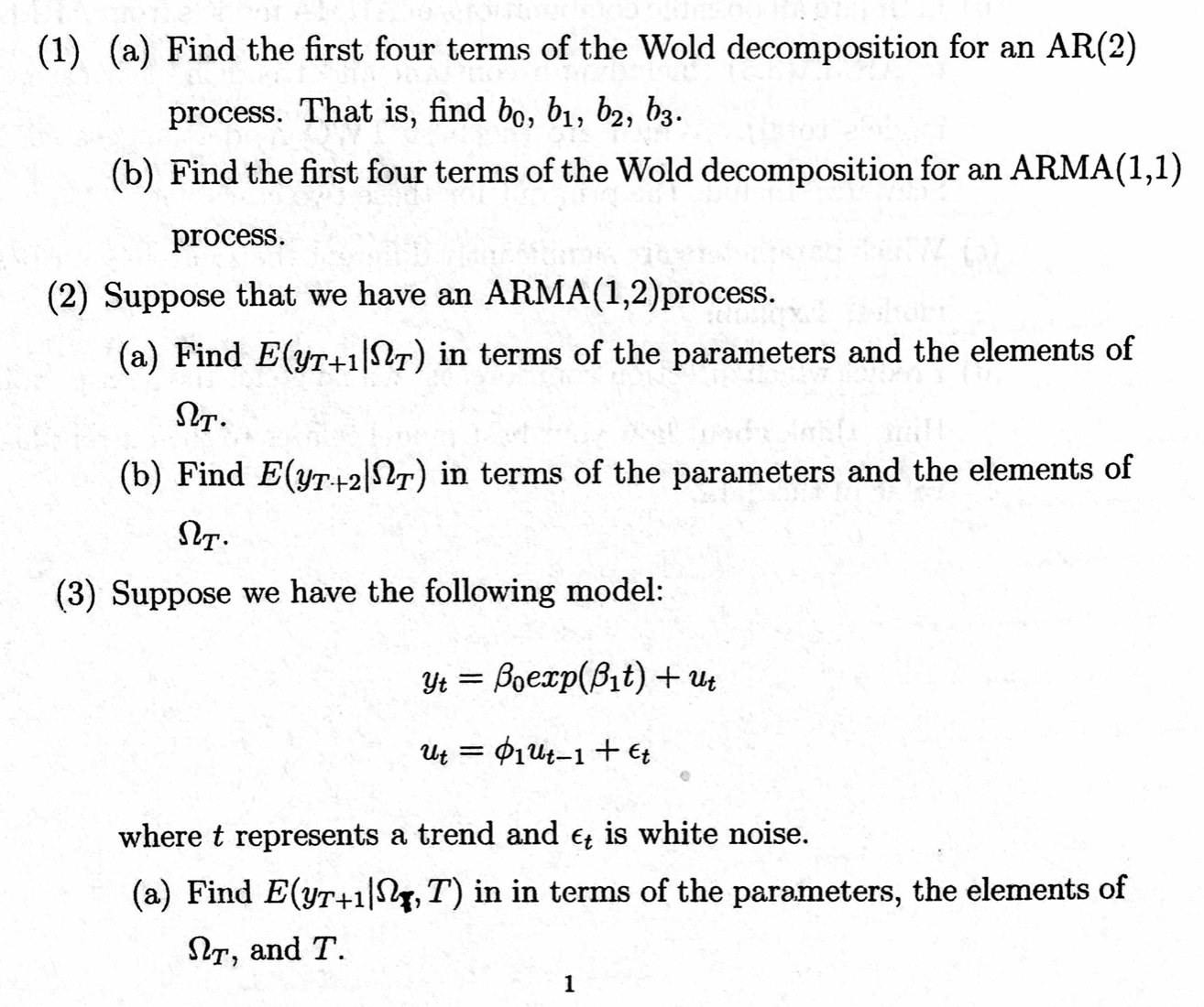 (1) (a) Find the first four terms of the Wold decomposition for an ...