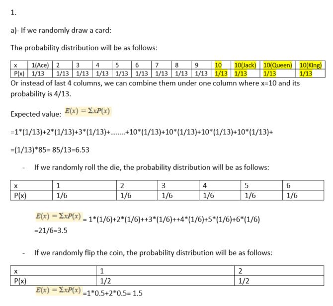 1. Suppose you have a standard deck of 52 cards. We will treat aces...
