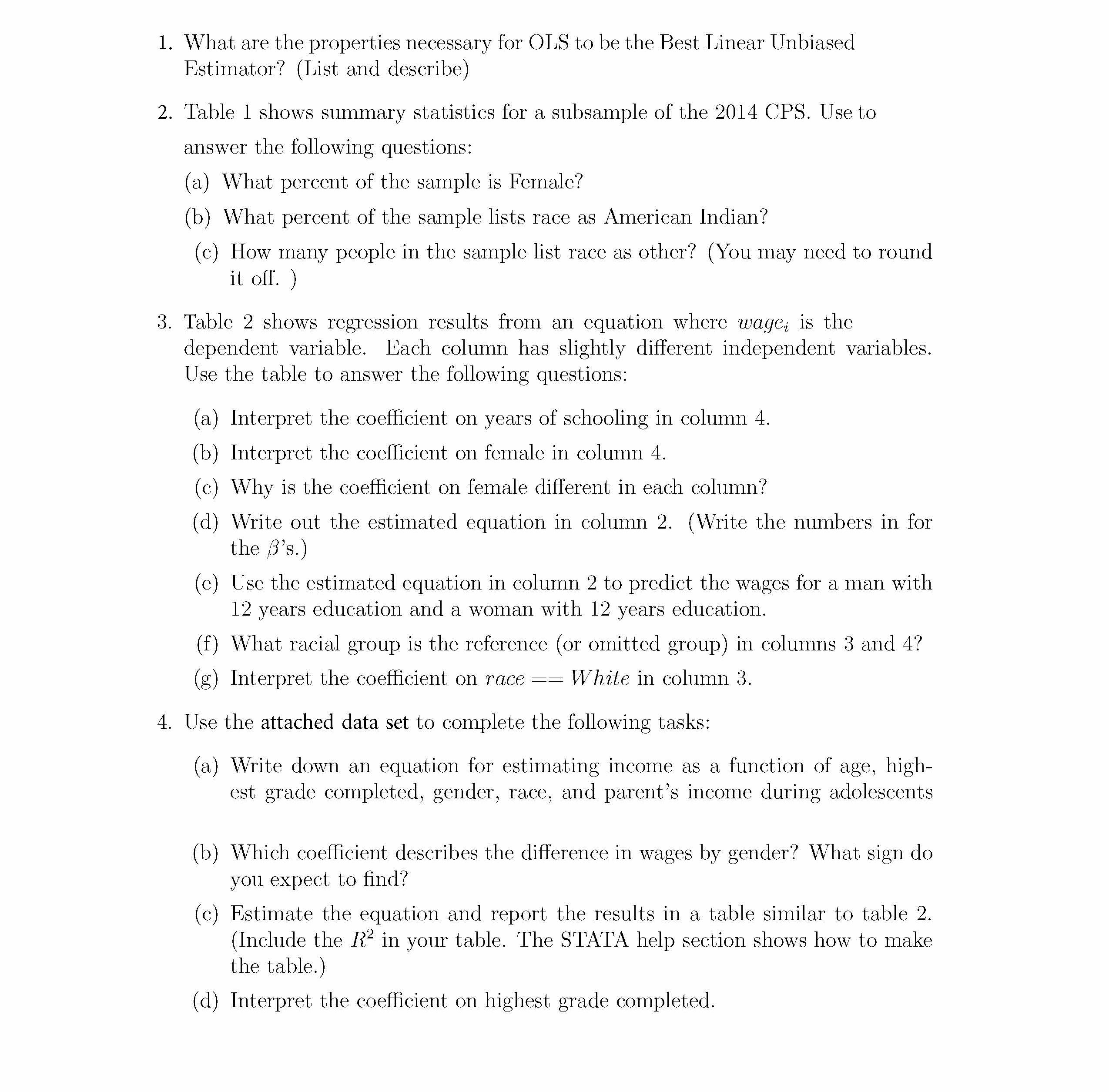1. What the properties necessary for OLStobethe Best Linear Unbiase...