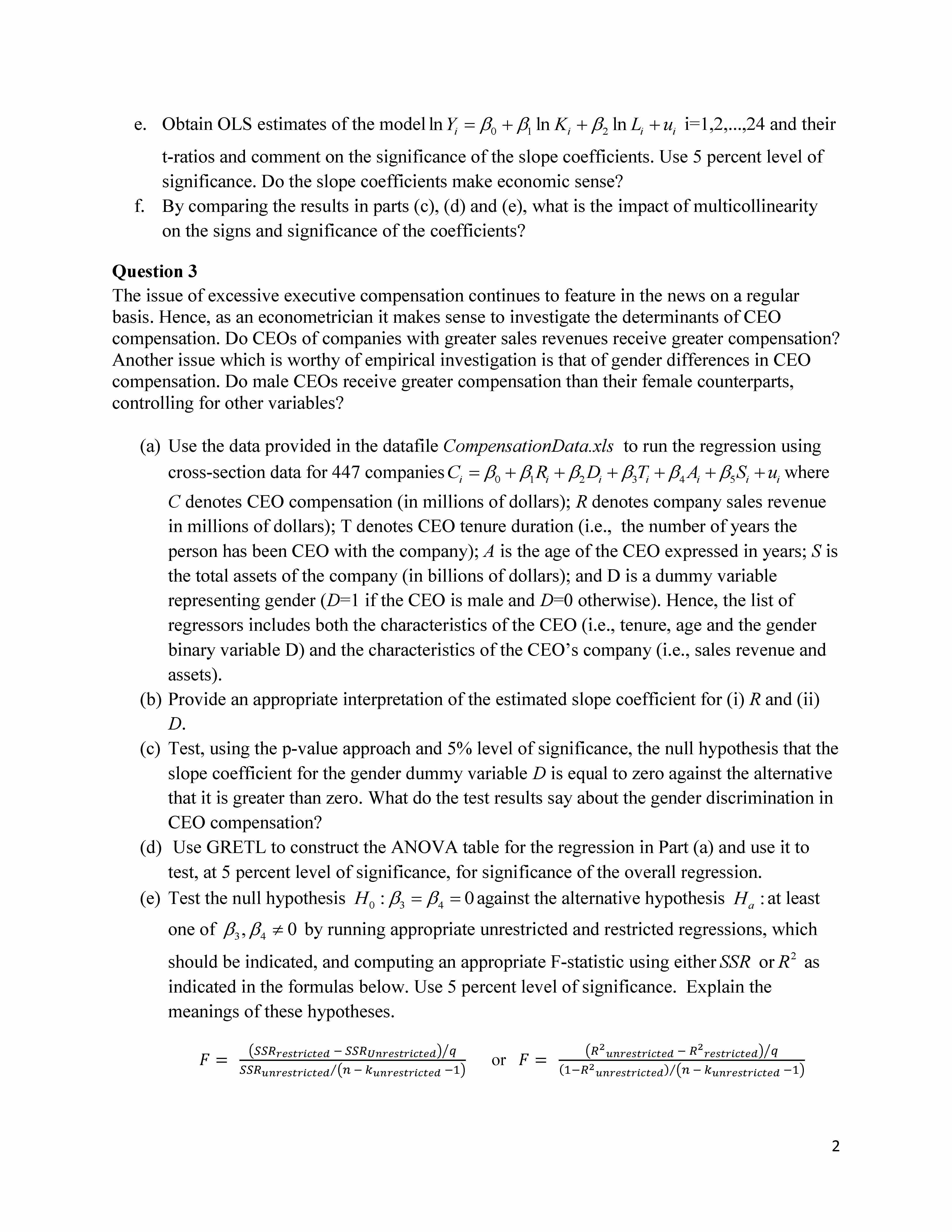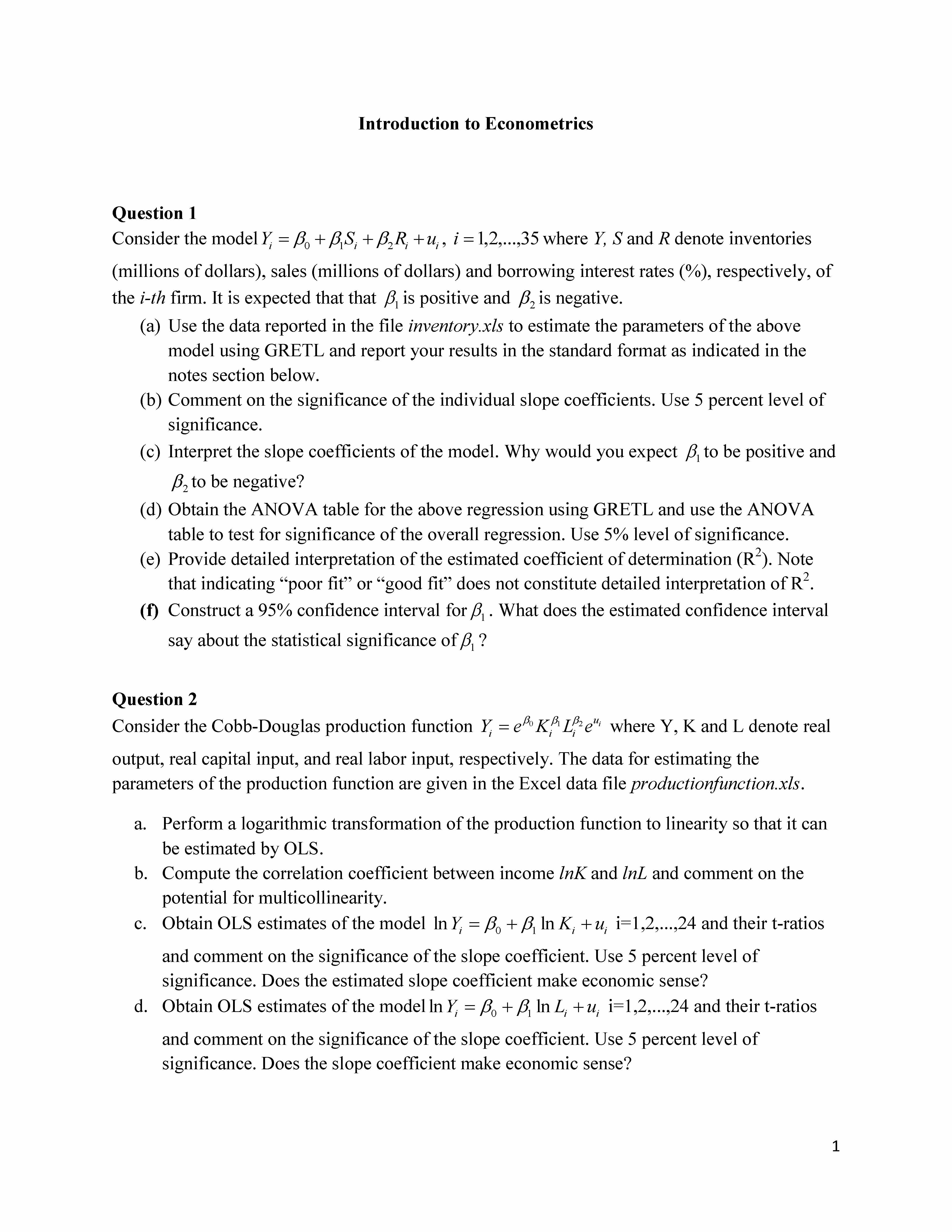 Introduction to Econometries Question 1 Consider the model Bo BS ...
