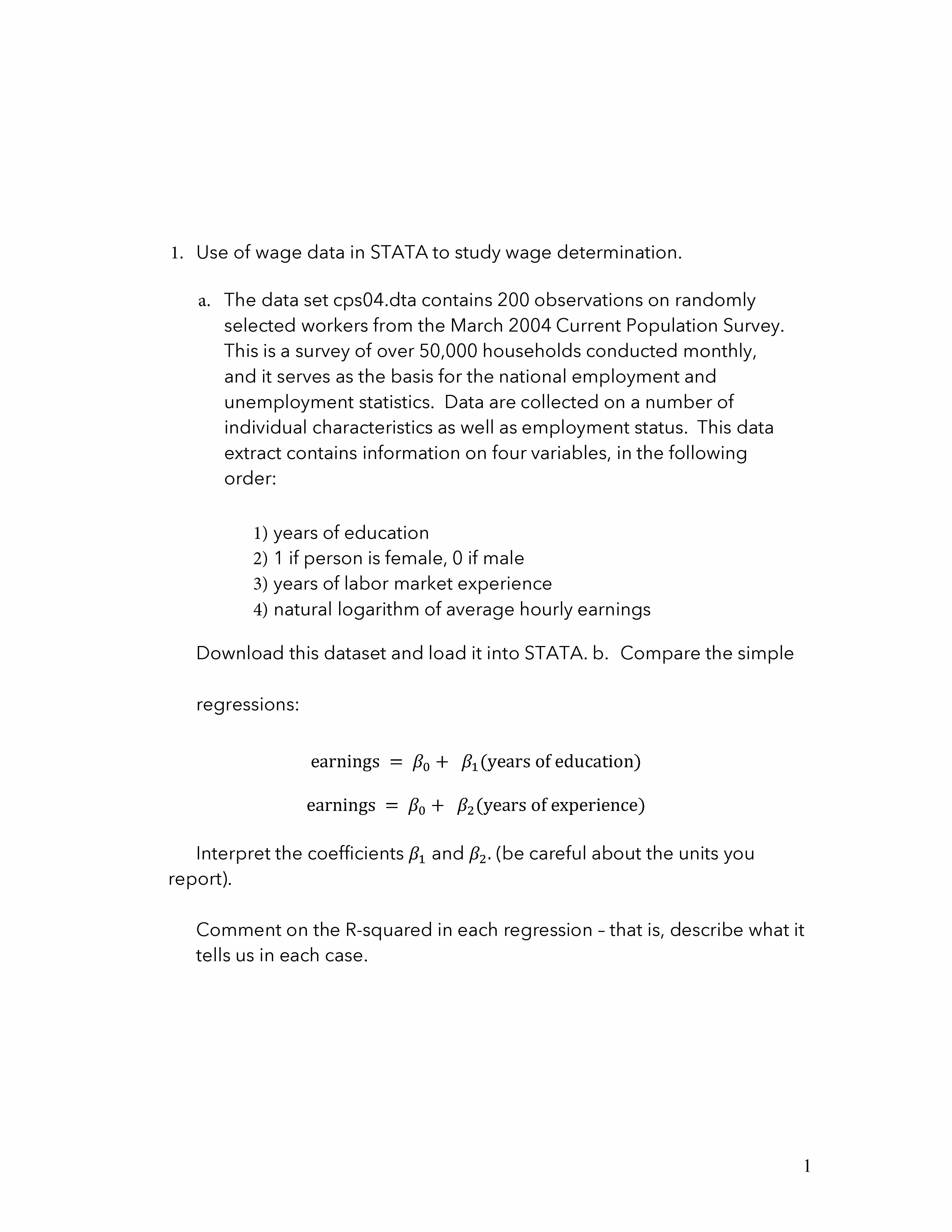 1. Use of wage data in STATA to study wage determination. a. The d...