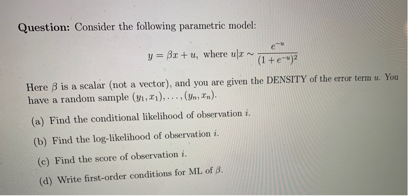 Question: Consider the following parametric model: ettle y = Bx +...