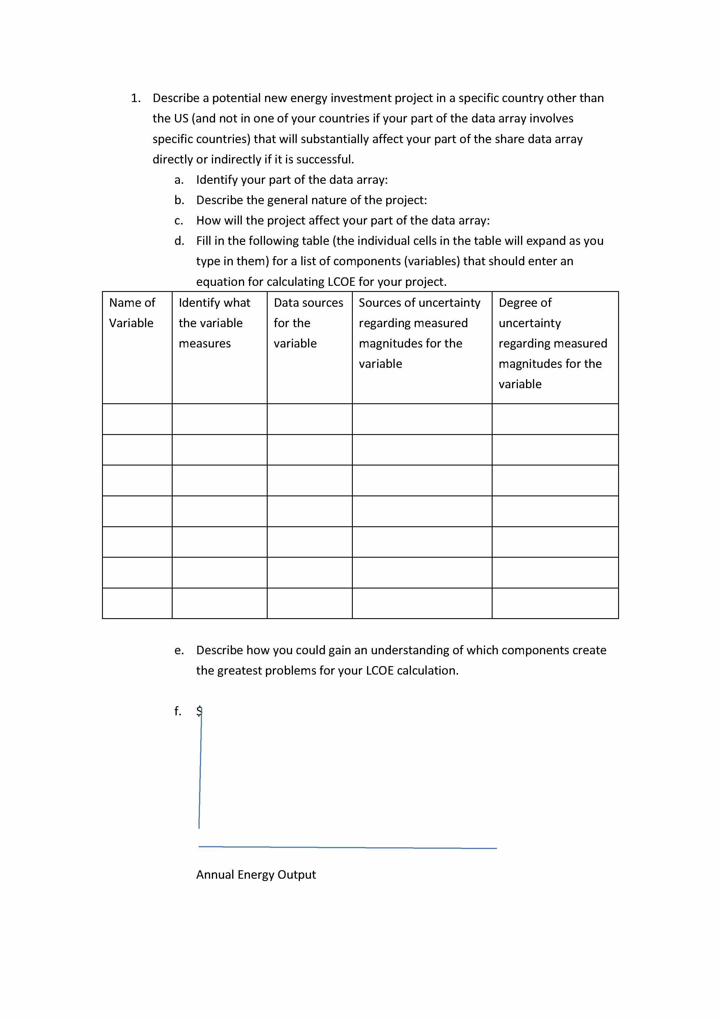 1. Describe a potential new energy investment project in a specific...