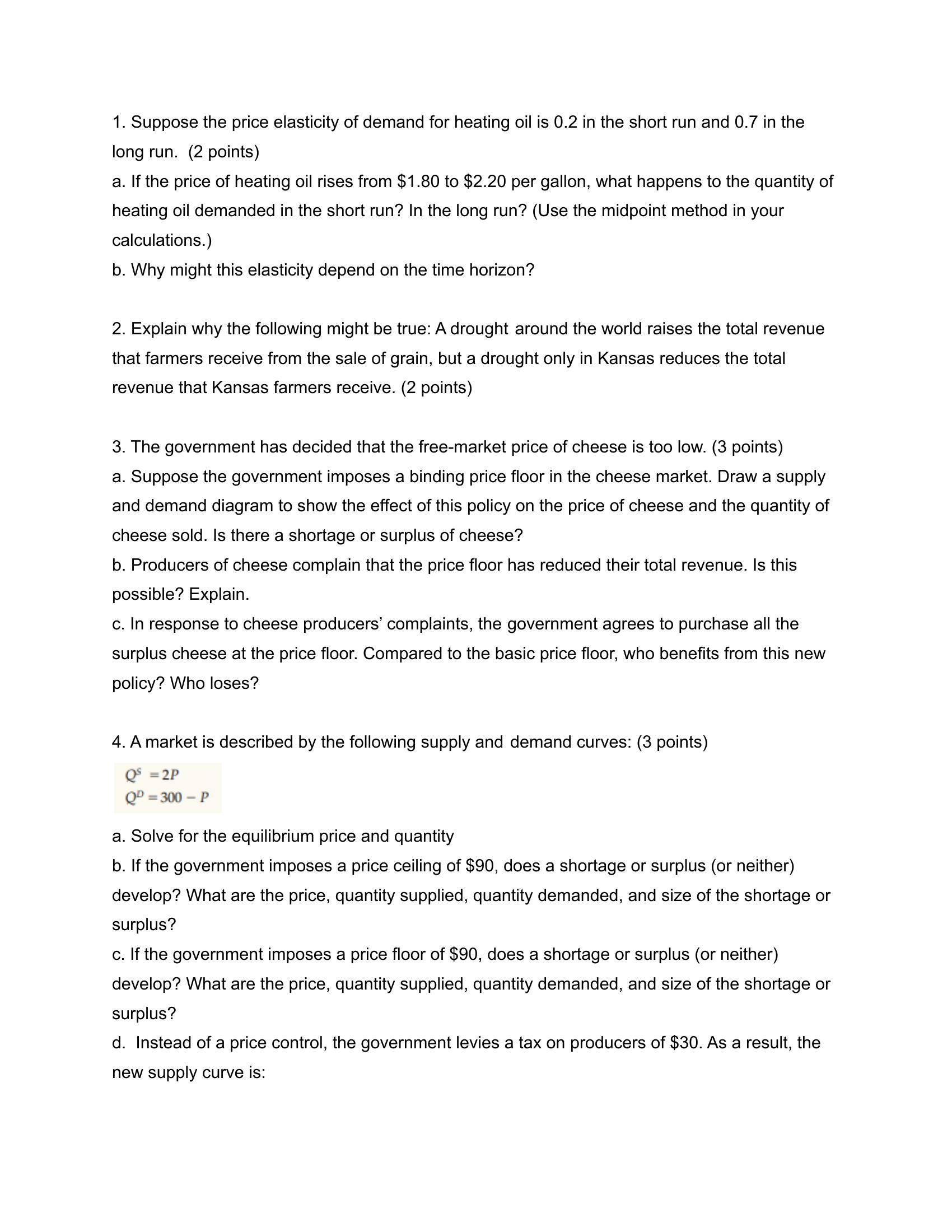 1. Suppose the price elasticity of demand for heating oil is 0.2 in...
