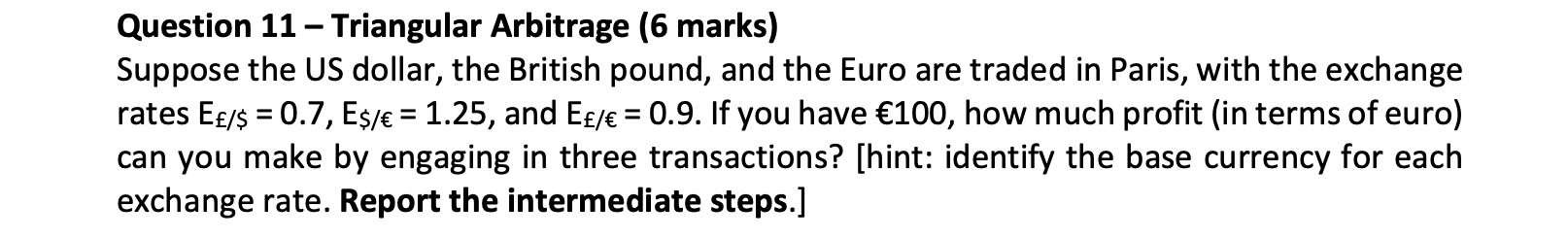 Question 11 - Triangular Arbitrage (6 marks) Suppose the US dollar...