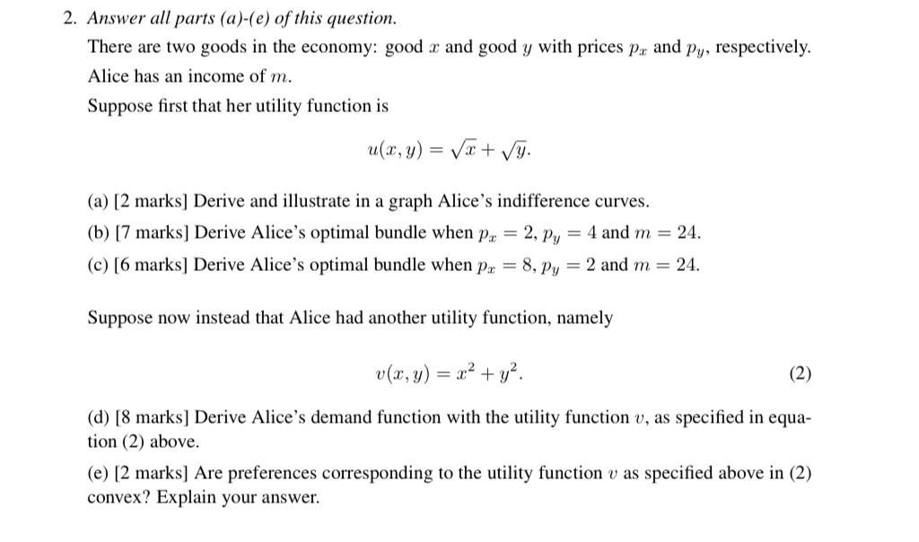 2. Answer all parts (a)-(e) of this question. There are two goods ...