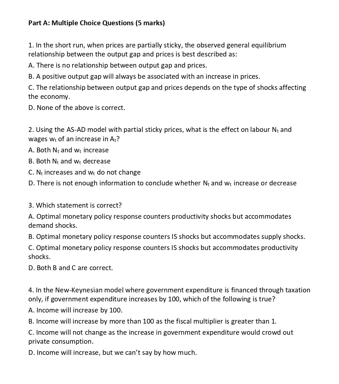 Part A: Multiple Choice Questions (5 marks) 1. In the short run, w...